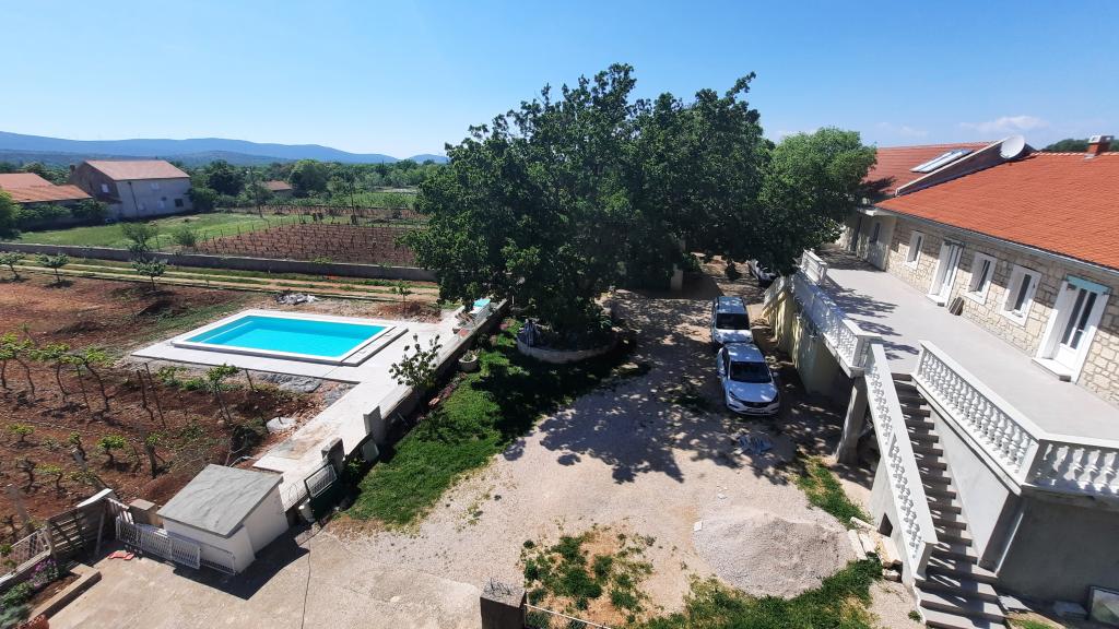 Turistična taksa je vključena v ceno.Vključena pijača dobrodošlice! Uživali boste v prenovljeni namestitvi z možnostjo uporabe novega bazena v apartmaju. Nahajamo se v neposredni bližini nacionalnega parka Krka, kanjona reke Čikole, nedaleč od nas sta mesto Drniš, mesto Skradin, medtem ko je mesto Šibenik s svojimi kulturnimi znamenitostmi in gastronomsko ponudbo oddaljeno le 15 km. Čeprav smo v osrčju Dalmatinske Zagore, je prva morska plaža oddaljena le 20 km. Obkrožajo nas kolesarske poti, za goste željne avanture pa je na voljo tudi ZipLine Šibenik nad kanjonom Čikole. Za goste, ki prihajajo z letalom na letališče Split ali Zadar, je ob doplačilu možno organizirati prevoz do hiše.