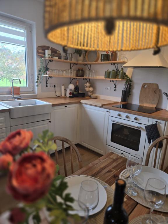 Den Family Home je oaza miru in tišine. Domače vzdušje v vasi in okolici poskrbi prostorna hiša, ki vam je v celoti na razpolago. Ob hiši imate tudi pravo lovsko konobo z ognjiščem in opremljeno kuhinjo, kjer lahko uživate ob pripravi obrokov ali druženju. Pogled skozi okno na polja in gozdove ponuja edinstvene trenutke sprostitve. Ko parkirate svoje vozilo v garaži, pozabite na mestni vrvež, ostane vam le čisti oddih in spoj narave in človeka. Hiša je popolnoma opremljena za največ 8 oseb.