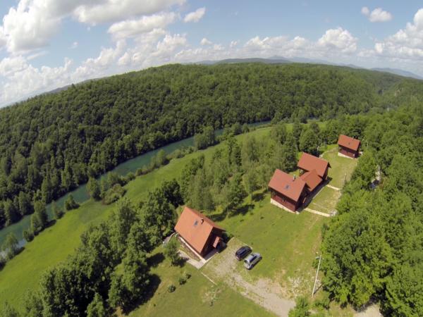 V celoti opremljena in sodobno Počitniške hiše v neokrnjeni naravi ob reki Mrežnici. Najem tri lesene hiše. Vsak je 140 m2. V mansardi so tri spalnice v pritličju dnevno sobo, kuhinjo in teraso. Po enem kopalnico v prvem nadstropju in pritličju. Kuhinja je v celoti opremljena. Gostje lahko uporabljajo žar. Poleg hiše je igrišče za nogomet, odbojko in badminton. Pred veliko teraso je bazen 10x4 m. Prilagajanje sprehajališče ob reki. Mi najem kajakov in gorskih koles. Hrana je mogoče naročiti vnaprej.