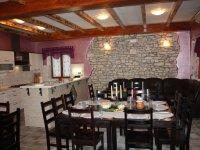 Ohranjena je tradicionalna istrska arhitektura, z dodanimi deli v modernejšem slogu pa je nastala rustikalna zgradba, ki izžareva tradicijo in ustreza sodobnim zahtevam današnjih gostov. V pritličju se nahaja kmečki turizem, kjer gostom nudijo zajtrk ali polpenzion. Za zajtrk ponujamo avtohtone dobrote, predvsem lastno proizvodnjo različnih marmelad, kruha, narezkov, sirov, jogurta, sadja, sladkih sladic, nudimo tudi bio zajtrk, ter zajtrk po posebnih potrebah. Za večerjo pripravimo tipične istrske jedi (različne fuji testenine, njoke, raviole, lazanje z različnimi omakami in enolončnicami ter različne mesne plošče z našimi izdelki, siri, pršuti). V kmečkem turizmu je lepo ognjišče, prostor za druženje in počitek, ki bo predvsem v zimskem času popestrilo ta ambient z gostoljubnostjo gostiteljev. Poleg namestitvenih gostov v našem kmečkem turizmu sprejemamo tudi najavljene skupine do 30 oseb za vse priložnosti.