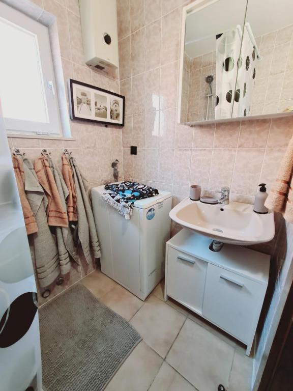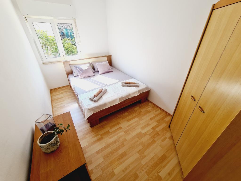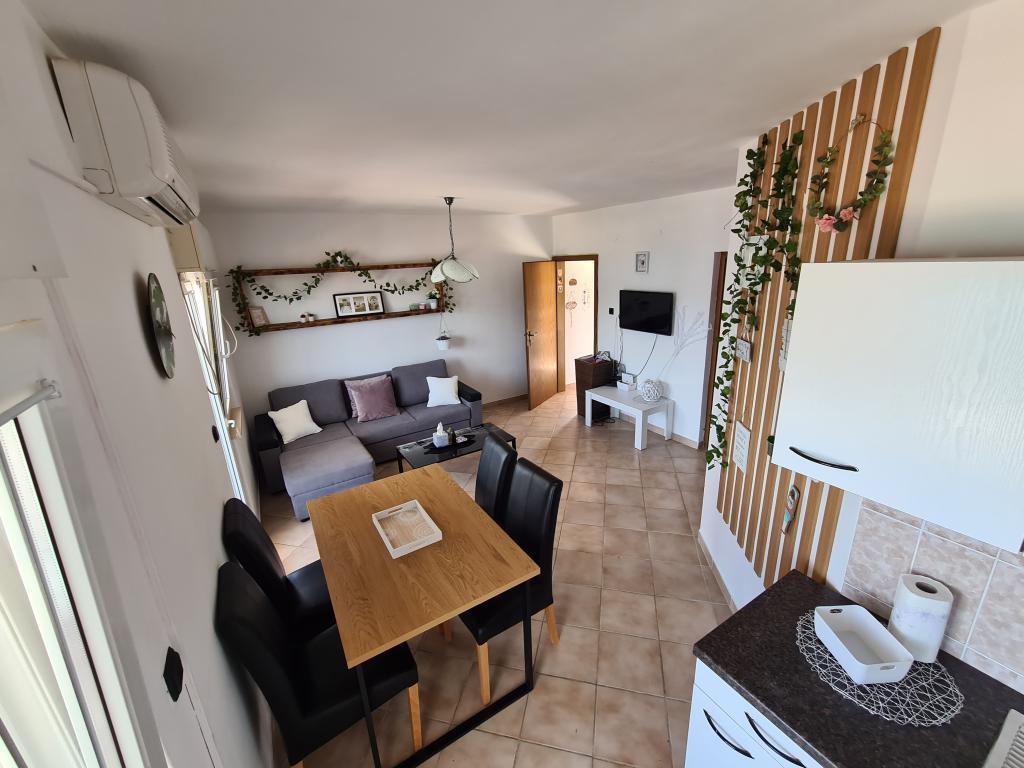 Lep apartma s pogledom na morje. Pogled seže do parka Marjan (Split) in zaliva Kaštelanci. Idealen, miren in sproščujoč kraj za sprostitev. Objekt se nahaja na sredini polotoka Čiovo, tako da je od centra Trogirja oddaljen 8 km (približno pol ure hoje). Objekt je opremljen z osnovnimi potrebščinami za bivanje, ima garažirano parkirno mesto in veliko teraso za prijetno preživljanje časa na prostem. Kraj je povezan z avtobusom in čolnom z vsemi zanimivostmi, ki jih želite videti.