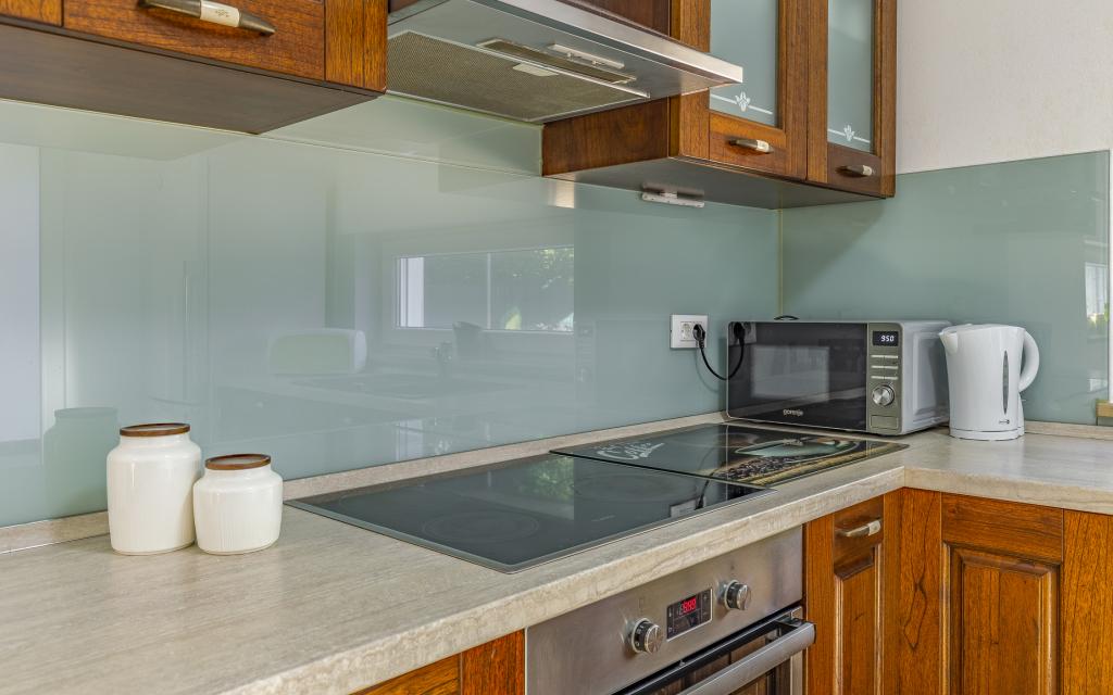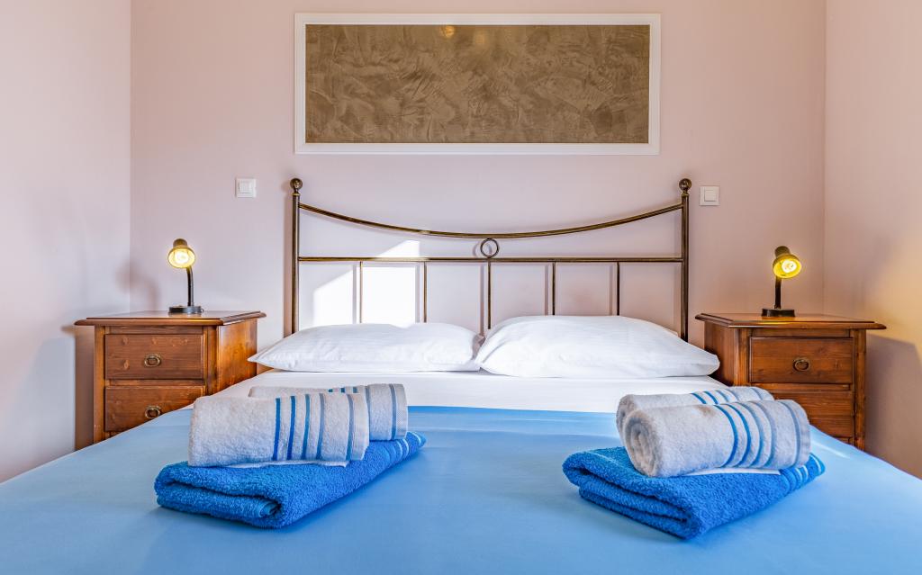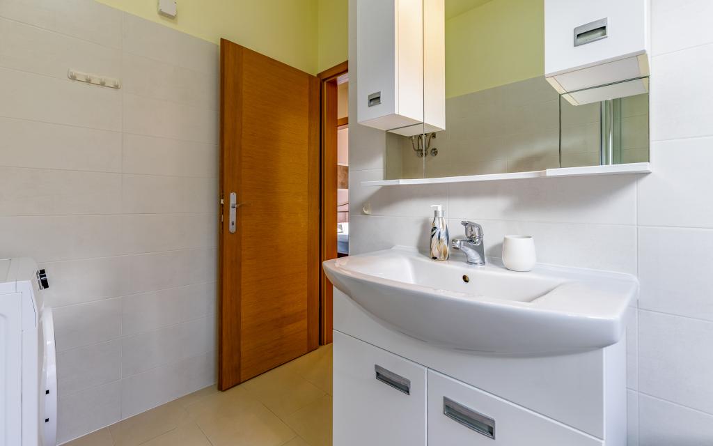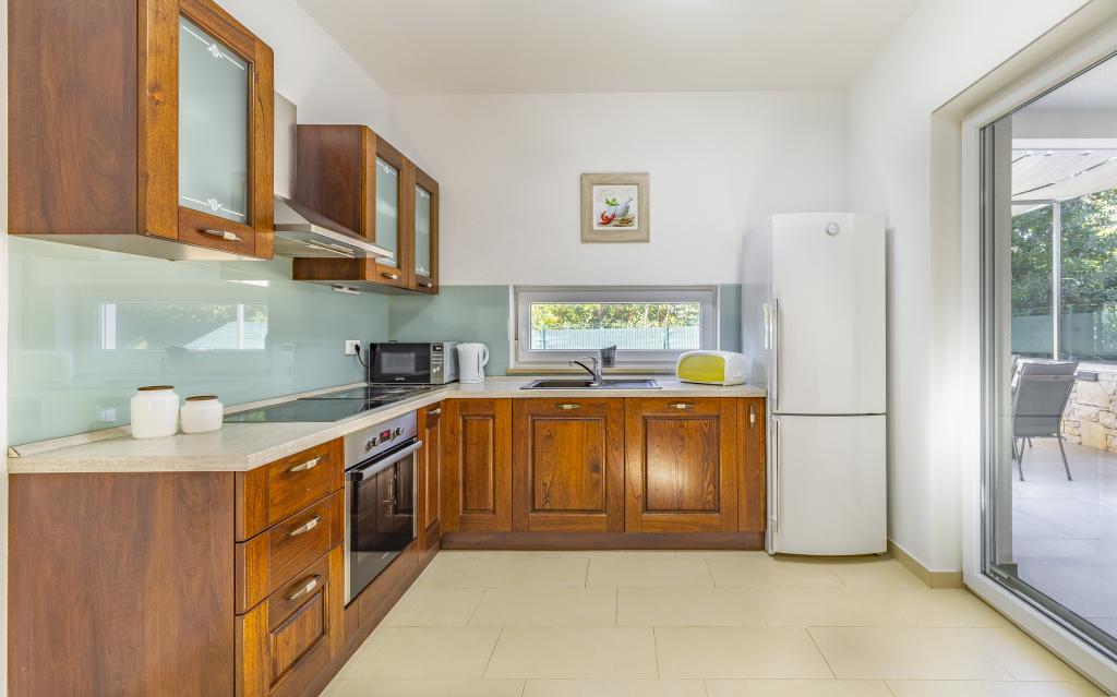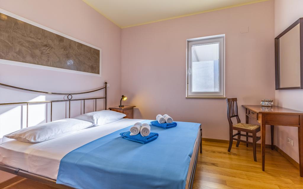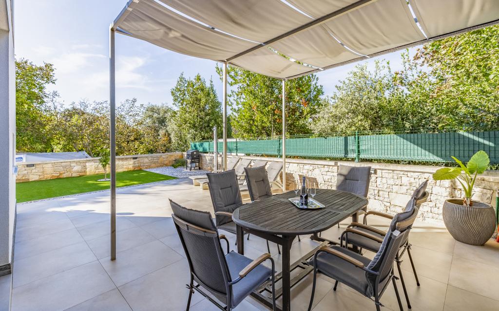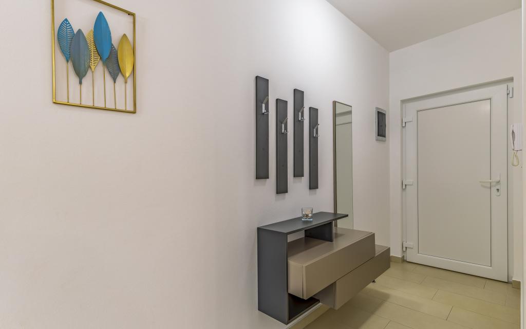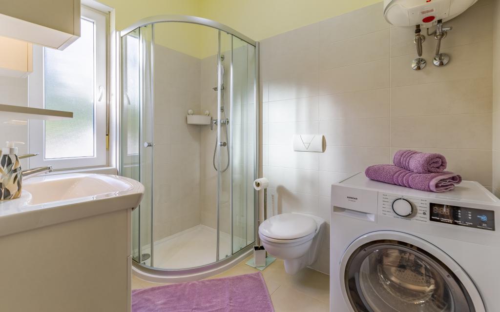 Popolnoma in nadstandardno opremljeno stanovanje (80 m2) na odlični lokaciji v mirnem delu Banjola, le 5 minut (300 m) hoje do najlepših plaž v okolici. Stanovanje se nahaja v pritličju stanovanjske stavbe s samo tremi stanovanji. Stanovanje ima zasebni vrt (100 m2) s teraso, mizo, ležalniki, zunanjim tušem in žarom, ki omogoča prijetno druženje z veliko zasebnosti in je še posebej primerno za družine z otroki. Ob stavbi je zasebno parkirišče z neposrednim dostopom do vrta in terase. Vrt je bil leta 2024 popolnoma prenovljen. Celotna stavba je zaščitena z varnostno ograjo (dostop s kartico). Stanovanje ima 2 spalnici z zakonsko posteljo, 2 kopalnici z WC-jem in tušem, prostorno dnevno sobo z raztegljivim kavčem, jedilnico in kuhinjo. Stanovanje je klimatizirano in pozimi ogrevano (talno ogrevanje) ter ima notranji kamin, zato je primerno tudi za bivanje v hladnejših jesensko-zimskih mesecih. V neposredni bližini apartmaja se nahajajo številni bari in restavracije ter urejene trgovine.