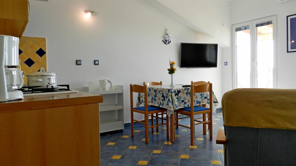 Preberite več Namestitvene enoteCene veljajo za vsak apartma na dan uporabe. Cena vključuje vse stroške uporabe, kot so elektrika, voda in plin, ter čiste brisače in posteljnina. Akontacija, ki potrjuje rezervacijo, znaša 30 % celotnega zneska. Prihod je možen kateri koli dan v tednu izven sezone z najmanj 5 dnevi, v sezoni pa ob sobotah in nedeljah z najmanj 7 dnevi, sobote za Ap 1 2 3, nedelje za Ap 4 5. Krajše bivanje je možno po višji ceni. Cena vključuje vse, klimatsko napravo, brezplačno parkiranje, WiFi internet, turistične takse, pralni stroj, posteljnino, brisače, končno čiščenje. Dodatnih stroškov ni. Akontacija za rezervacijo (30 %) se plača izključno z bančnim nakazilom na račun lastnika, odprt pri OTP Banka Hrvatska. Podatke za plačilo boste prejeli po e-pošti. Preostali znesek (70 %) se plača z gotovino, ob prihodu v apartma. Prijava je po 15. uri. Veselimo se vašega prihoda in vam želimo prijetno bivanje! Odjava je možna do 10. ure ali po dogovoru.