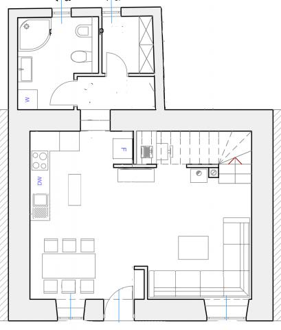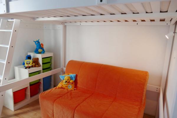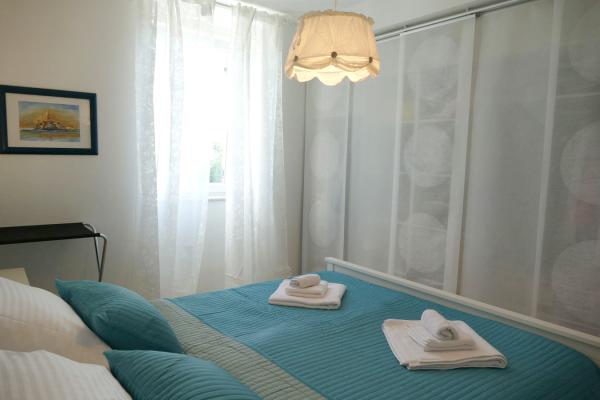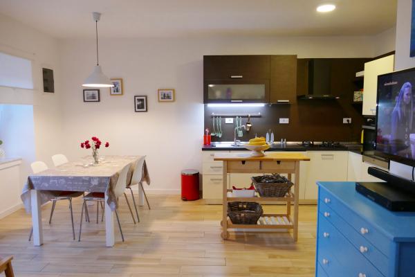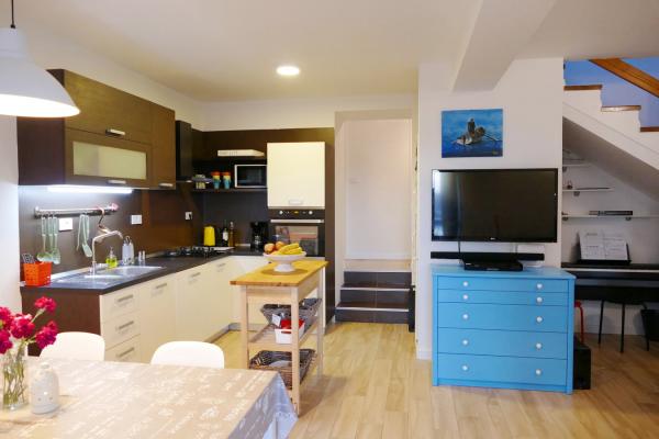 To je na novo obnovljena 200 let stara hiša. Primeren je za družine z otroki. Prostor je približno 80 m2 v dveh nadstropjih. V pritličju je kuhinja, jedilnica, dnevna soba, kopalnica s tušem in shramba. Dve spalnici in še ena kopalnica s kadjo sta zgoraj. Ena spalnica ima zakonsko posteljo 160x200 cm. Druga spalnica (otroška spalnica) ima povišano posteljo, ki meri 140x200 cm (postelja IKEA Stora), pod posteljo pa kavč, ki je enake velikosti, ko ga izvlečete. Otroška spalnica je opremljena z igračami, pobarvankami, bojicami. Najbližja trgovina je oddaljena približno 1 km, najbolje pa je, da se odpravite po nakupih z avtomobilom. Najbližja plaža je oddaljena približno 500 m.
