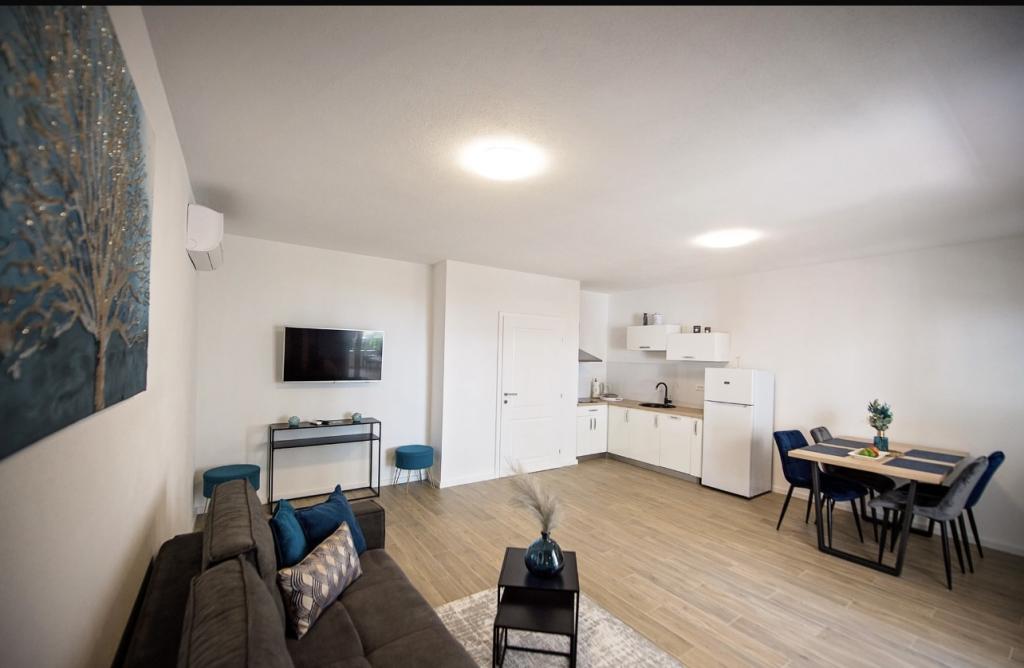Prostor za najem. Apartma z dvema spalnicama, WC/tuš, kuhinja. Sobe imajo klimatsko napravo. Imate parkirišče v senci in veliko dvorišče. Nudimo trampolin za otroke. Kuhinja je prostorna.