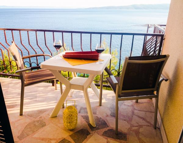 Studio apartma Ujević se nahaja v stanovanjskem delu Baške Vode - predelu Rogač, obkroženem z modernimi vilami in družinskimi hišami. Nahajamo se nad znamenito plažo Ikovac. Garsonjera je primerna za družinske počitnice, romantične in mladinske počitnice. Apartma ima balkon z izjemnim pogledom na morje in otoke srednjedalmatinskega arhipelaga. Stanovanje je v celoti prenovljeno in v celoti opremljeno. Oddaljeni smo od mestnega vrveža, hrupa in vrveža.... Prijeten oddih vam zagotavlja naš dolgoletni turizem. Za vas smo tukaj že od leta 1982. Pridite in se prepričajte sami, predvsem pa - počivajte!!! Do plaže se pride po stopnicah. Družina Ujević