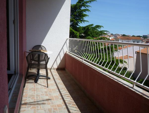 A1 Apartma se nahaja v drugem nadstropju hiše. Sestavljen je iz 2 spalnici, 2 kopalnici, veliko kuhinjo in tremi balkoni. A2 Apartma se nahaja v prvem nadstropju hiše. Sestavljen je iz 2 spalnici, 2 kopalnici, ena enoposteljna soba, kuhinja, dnevna soba, 3 balkoni in 2 ločeni vhodi. Hiša je veliko parkirišče v senci.