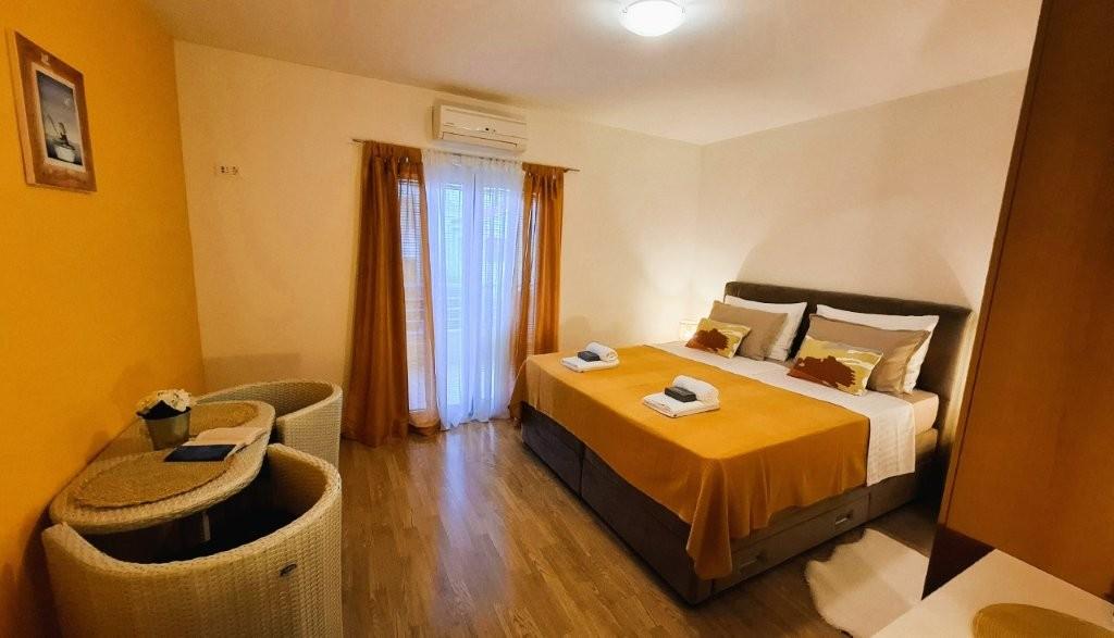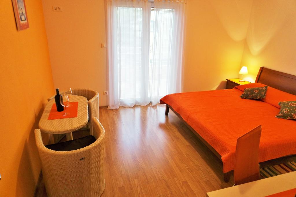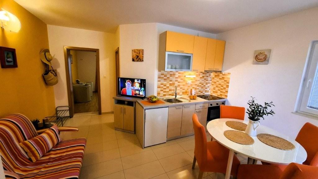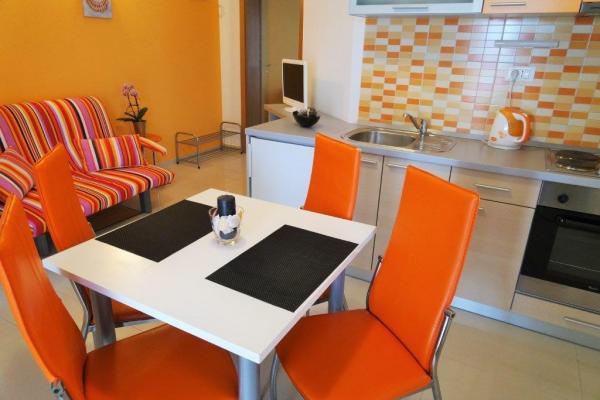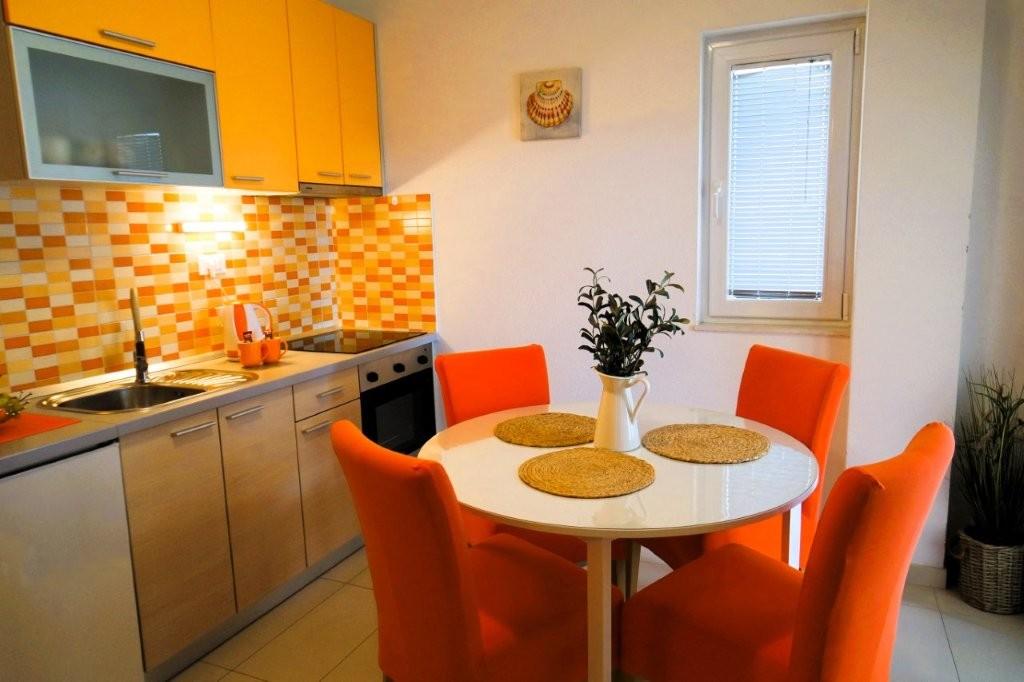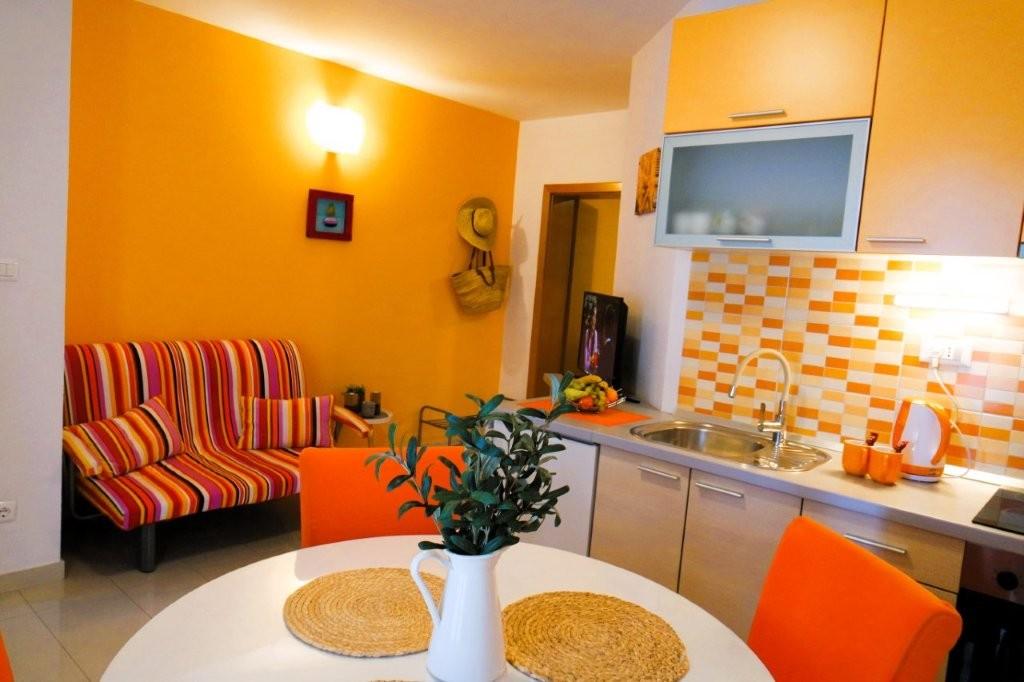 Sodobno opremljeni apartmaji Harmonia so odlična izbira za udobne družinske počitnice ali pare, ki iščejo udobno namestitev v bližini plaže. Približno 200m od plaže Nikola, v privlačnem predelu Baške Vode in nedaleč od centra s čudovitim bočnim pogledom na morje in goro Biokovo. Nudimo namestitev v zelenih in oranžnih apartmajih za 2 odrasli osebi z 2 majhnima otrokoma in v turkiznem apartmaju za 2 odrasli osebi z ev. 1 otrok. Vsak apartma je 40m2, ima veliko spalnico, dnevni prostor, ki vključuje popolnoma opremljeno kuhinjo, mizo in stole ter kavč posteljo, kopalnico in teraso. Zeleni in oranžni apartmaji se nahajajo v prvem nadstropju družinske hiše in imajo velike balkone s stranskim pogledom na morje, turkizno stanovanje pa se nahaja v kleti hiše brez pogleda na morje, z veliko teraso in sedežnimi naslanjači. Vsako stanovanje je popolnoma opremljeno, izžareva čistočo in svetle barve, ki se bodo zagotovo počutili udobno in imeli prijetne počitnice.