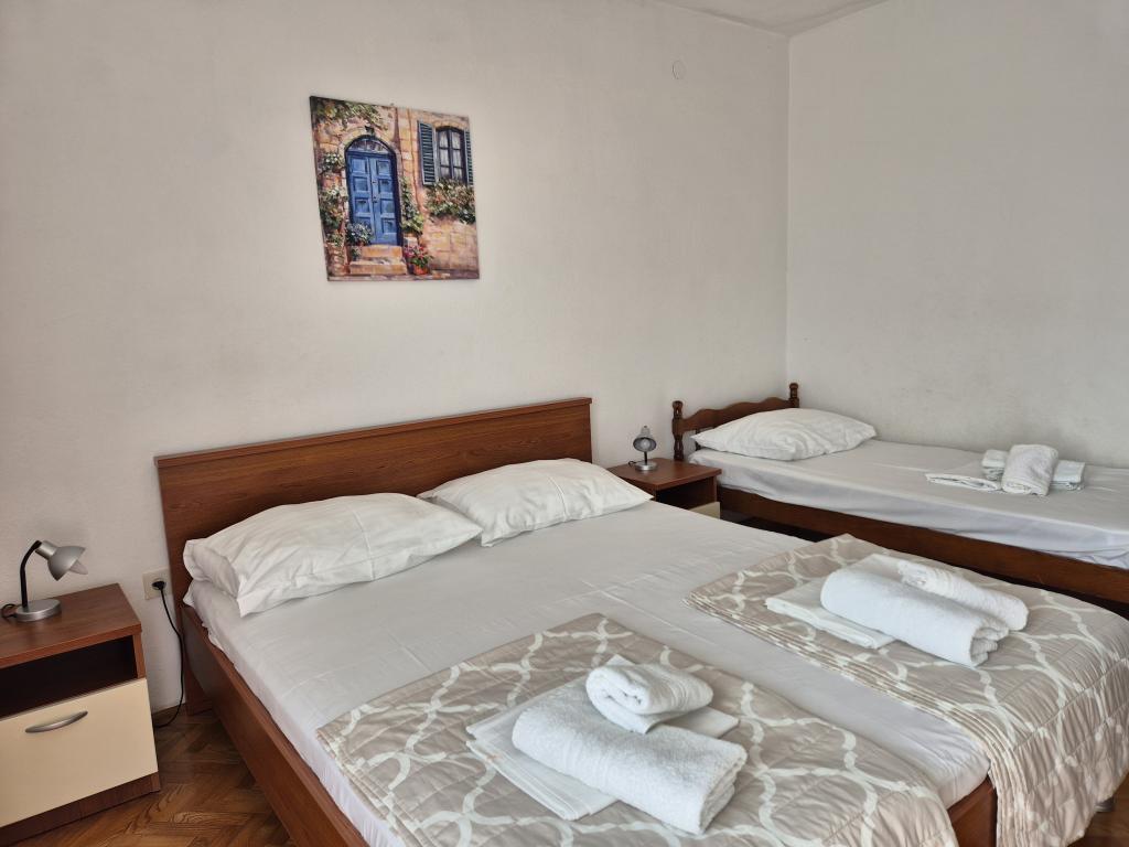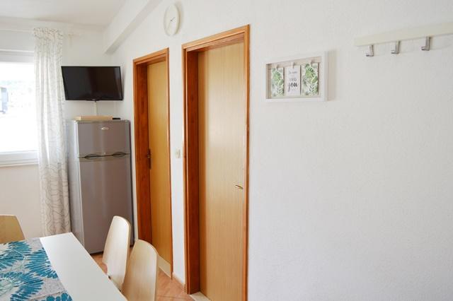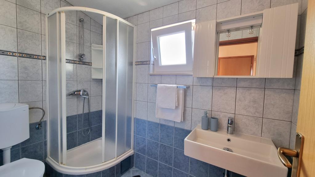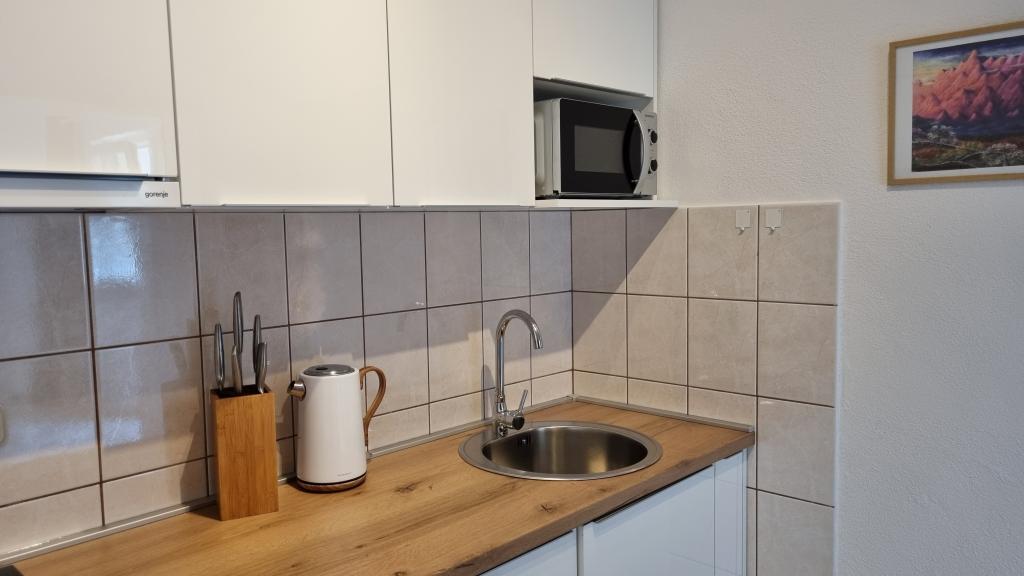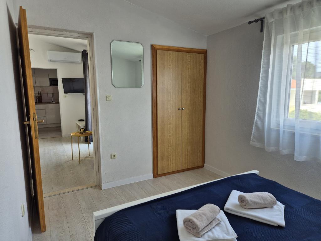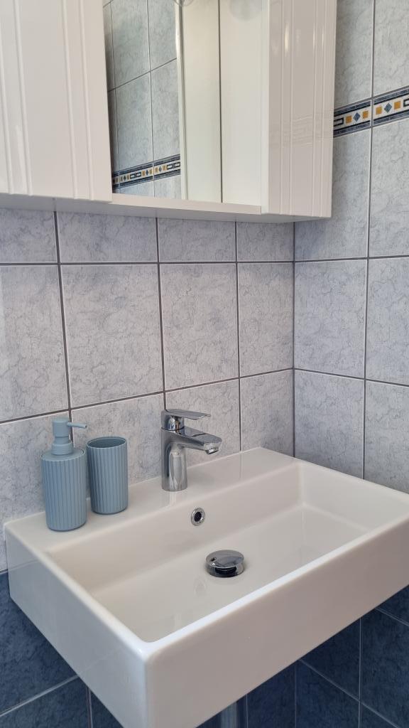 V nastanitvi smo bili 10 dni. Lahko rečem, da je gostiteljica čudovita gospa! Prijazna, prijetna! Pozdravila nas je z domačim žganjem. Hčerki je skoraj vsak dan ponudila piškotek, čokoladico in kos sadja. Namestitev je urejena in čista! Kuhinja je morda bolje opremljena kot moja doma. V apartmaju so sušilnik za lase, likalna deska, likalnik, pomivalno korito. Naš avto je bil parkiran na dvorišču vile v senci. Morje je oddaljeno le 200 m, prav tako trgovina. Konzum ali Tommy sta enako daleč, če greste nakupovat gor ali dol do morja. Vsa priporočila. Upam, da bomo kdaj spet prišli v Baške vode, in če bomo, bomo zagotovo spet prišli k teti Nevi.