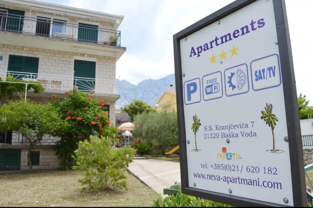 Preberite več Namestitvene enoteVstop v apartma po 14. uri na dan prihoda. Odhod iz apartmaja do 10. ure na dan odhoda. Rezervacija nastanitve je opravljena s plačilom akontacije na bančni račun v minimalnem znesku za 1 noč v aranžmaju v 2 dneh, preostanek pa ob prihodu. POMEMBNA INFORMACIJA: Prosimo, da vnaprej obvestite Apartmani Neva Baška Voda o predvidenem času prihoda. Svoje pripombe lahko izrazijo ob rezervaciji ali pa se obrnejo na nepremičnino neposredno preko kontaktnih podatkov, navedenih v potrditvi rezervacije, najmanj 24 ur pred prihodom (e-pošta / sms / whats app / viber).