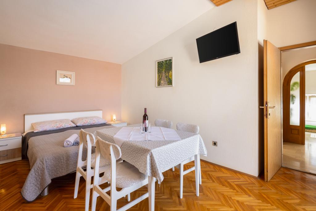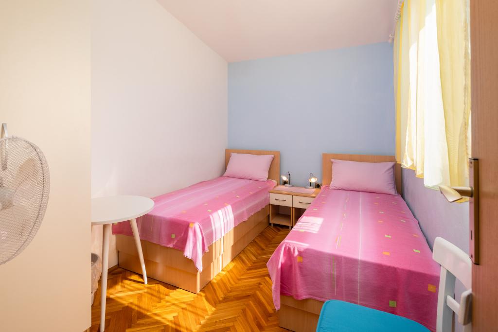 Ti apartmaji se nahajajo v mirnem delu Baške Vode in ponujajo udobno in praktično namestitev, le približno 400 m od plaže. Idealni za pare, družine ali manjše skupine, vključujejo še en prostoren apartma z dvema spalnicama in dvema kopalnicama ter manjšo enoto, primerno za 2 odrasli osebi in otroka. Oba apartmaja imata funkcionalno razporeditev, opremljene kuhinje, udobne dnevne sobe in zunanje prostore, vključno z zasebnim balkonom in dostopom do skupne terase z žarom. Gostom je na voljo tudi zasebno parkirišče in mirno okolje v bližini vseh ugodnosti. Idealna izbira za sproščeno in brezskrbno bivanje v Baški Vodi, z osebjem, ki je na voljo ves čas bivanja.