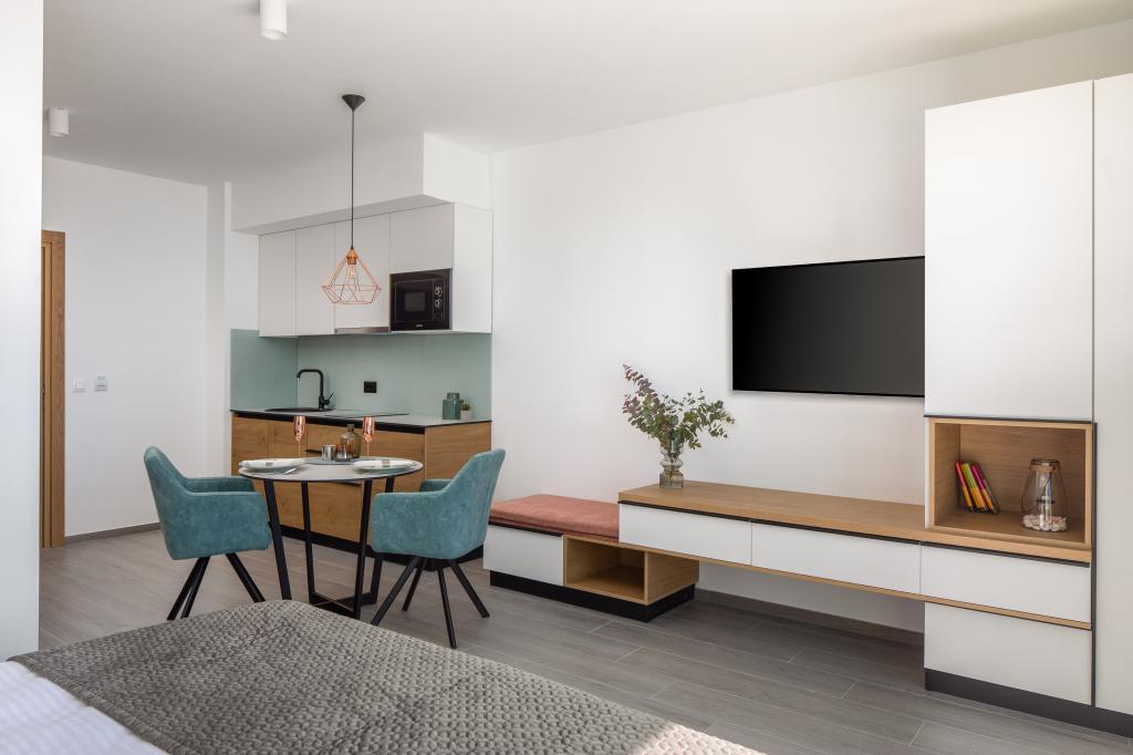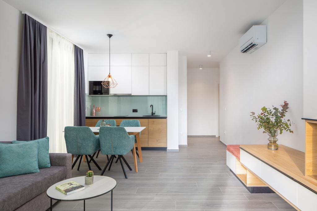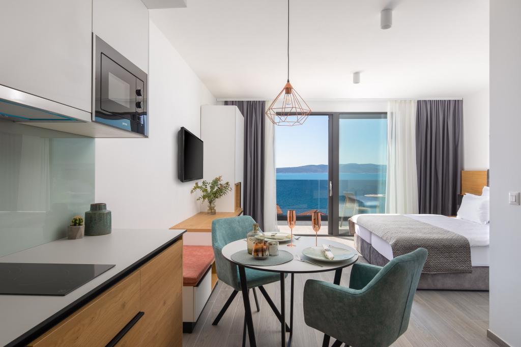 Na novo odprti apartmaji s čudovitim razgledom, ki se nahajajo v Baški Vodi in le 40m od najbližje plaže in 100m od centra. Apartmaji so moderno opremljeni z brezplačnim internetom, teraso in zunanjim bazenom z ležalniki. Vsak apartma je klimatiziran in vsebuje veliko televizijo z ravnim zaslonom s satelitskimi kanali, sef, kavč in popolnoma opremljeno kuhinjo s hladilnikom, štedilnikom, mikrovalovno pečico, kuhalnikom vode in aparatom za kavo. Vse enote imajo tudi lastno kopalnico s sušilcem za lase in toaletnimi potrebščinami.