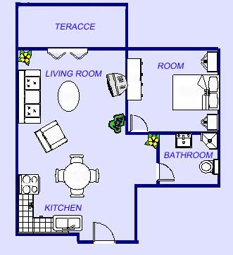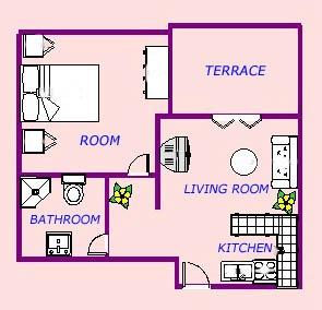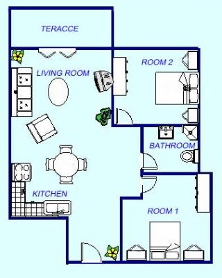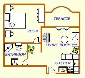 Apartma za dve osebi, možnost dveh dodatnih ležišč (45 m2)