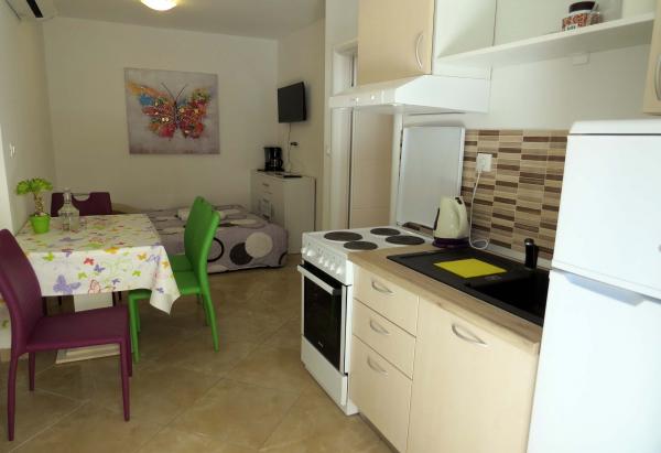 Sodobni apartmaji se nahajajo v centru Baške Vode, blizu plaže Nikolina. V bližini so trgovine, restavracije, bari in drugih objektov za prijeten čas. Vsaka soba je klimatizirana in ima televizijo in balkon (A6).