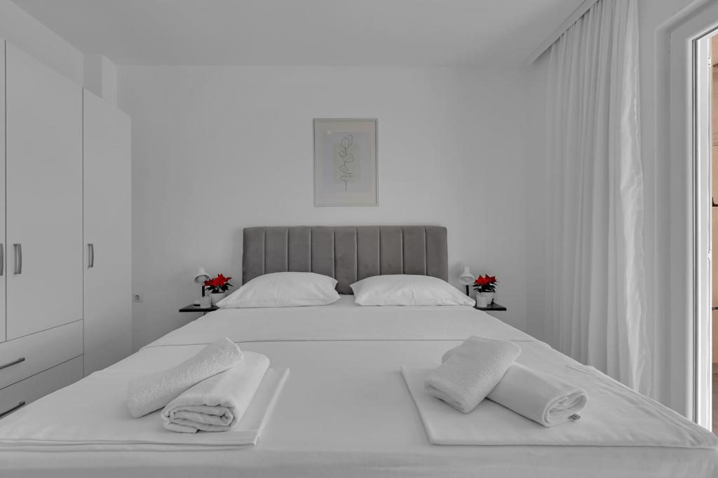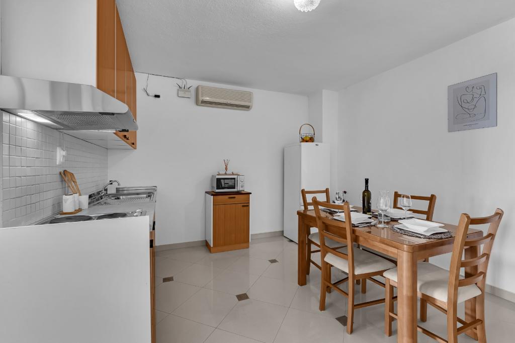 Apartma v zgornjem nadstropju za štiri osebe. Čist, prostoren in opremljen z vsem, kar potrebujete. Udobne postelje in popolna zaloga čistilnih sredstev. Čudovit razgled z balkona, jutranja kava je bila tam slastna. Damira, naša gostiteljica, je odlično skrbela za nas. Počutili smo se kot doma. Kraj, vreden priporočila, z veseljem se bomo vrnili tja.