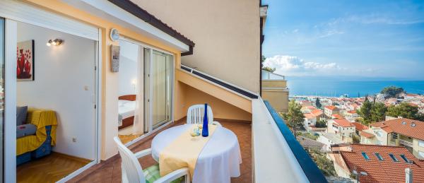 Naša družina se ponaša desetletja dolgo tradicijo turizma dejavnost. Kot tehnologijo vsakodnevnih sprememb, smo se odločili za uporabo interneta kot glavni medij našega časa, kot način za nas, da izboljša svojo ponudbo in lažjo komunikacijo s strankami v vseh pogledih. Naš objekt se nahaja približno 250 m od centra Baške Vode, kar je idealno, če želite, podnevi in zgodaj zvečer, da ostanejo na plaži in v centru, in ponoči dober spanec brez glasne glasbe in mimoidoče hrupa pod vašim oknom. AP1 je velikost 46 m2, ki je opremljena z dvema 2-ležečih mestih in imajo dodatna ležišča, če je potrebno. Ima velik balkon s pogledom na morje, otoke Brač in Hvar ter gorskem pobočju. AP2 je 40 m2 in je opremljen z dvema 2-ležečih mestih brez možnosti dodajanja dodatno ležišče. To je majhen balkon in pogled na morje in gorsko pobočje.