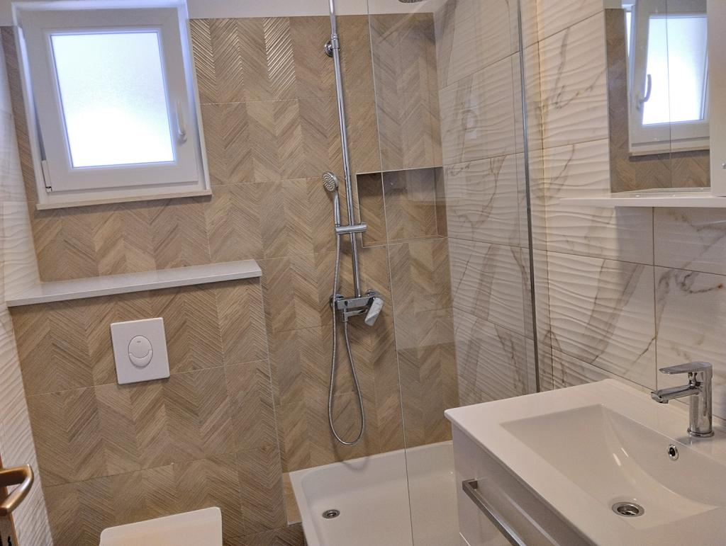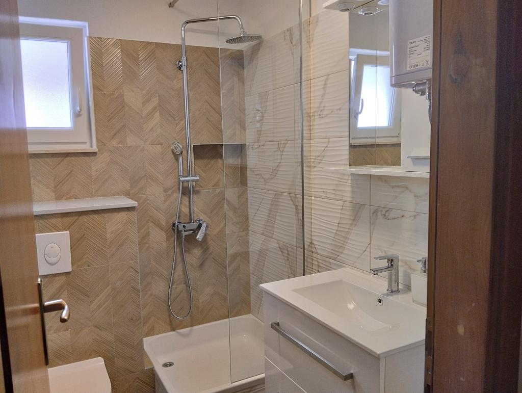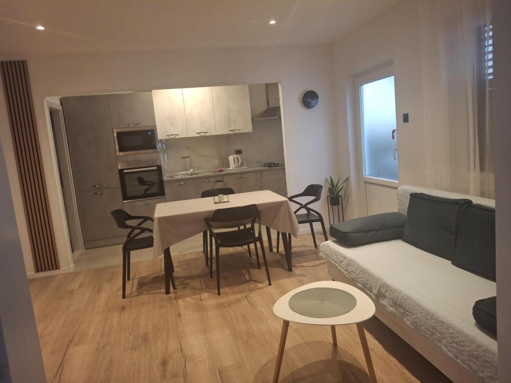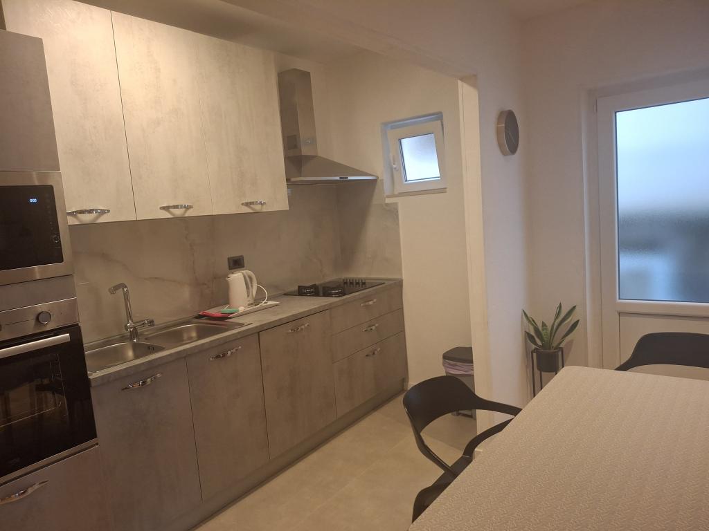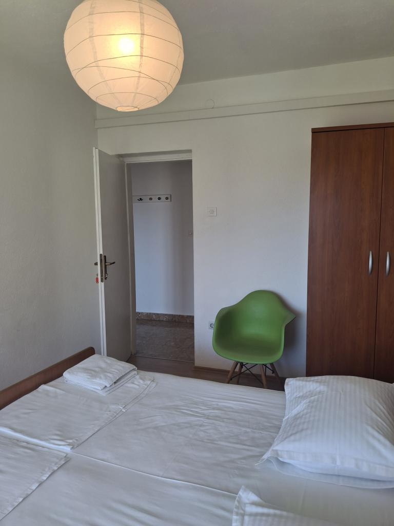 Klimatizirani apartmaji s pogledom na morje, le 200 m od glavne plaže, 4 minute hoje. APARTMA 2+2 -, udoben. Moderno opremljen apartma - 50 m2, ločena spalnica z zakonsko posteljo velikosti king size in raztegljivo posteljo za 2 osebi v dnevni sobi. APARTMA 4+ 1 z 2 spalnicama, velika dnevna soba z raztegljivo posteljo za 1 osebo-otroka. Primerno za družine in pare. Popolnoma klimatiziran, 3 klimatske naprave. APARTMA 3 udoben apartma za 2-3 osebe z balkonom - spektakularen pogled na morje in otoke. V okolici so restavracije, parkirišče ob hiši.