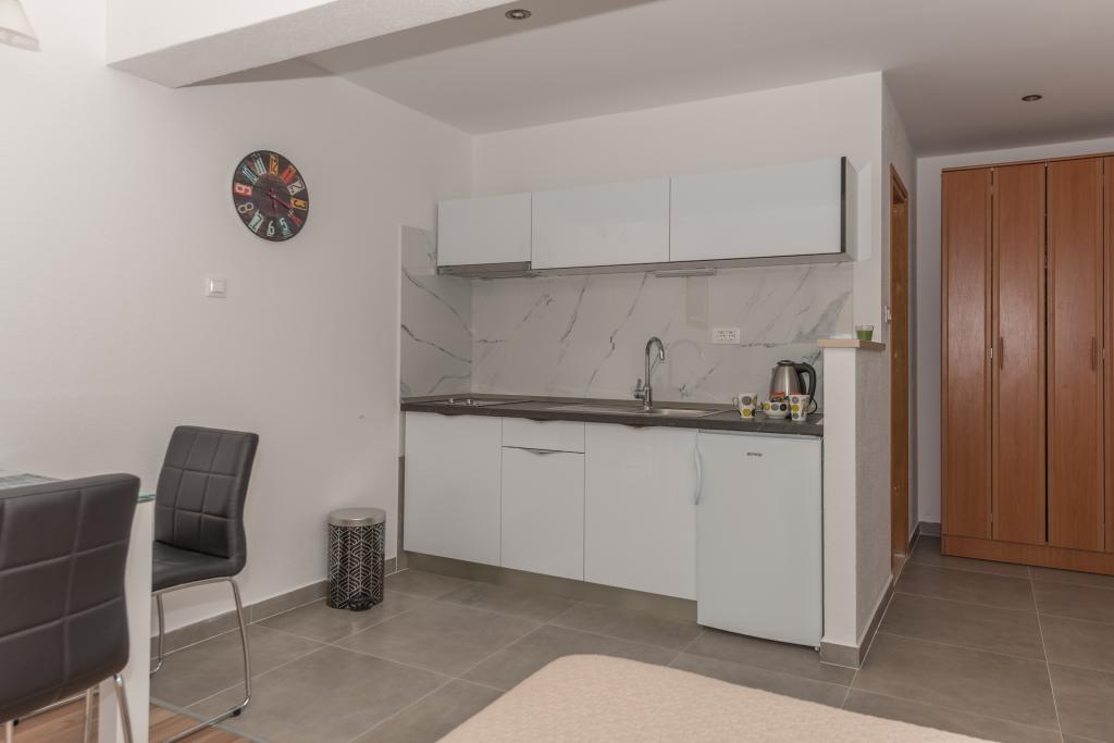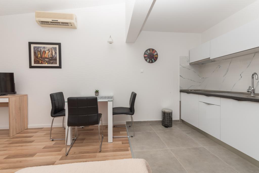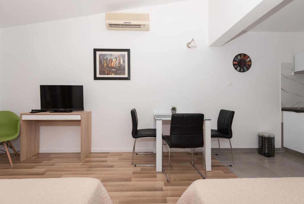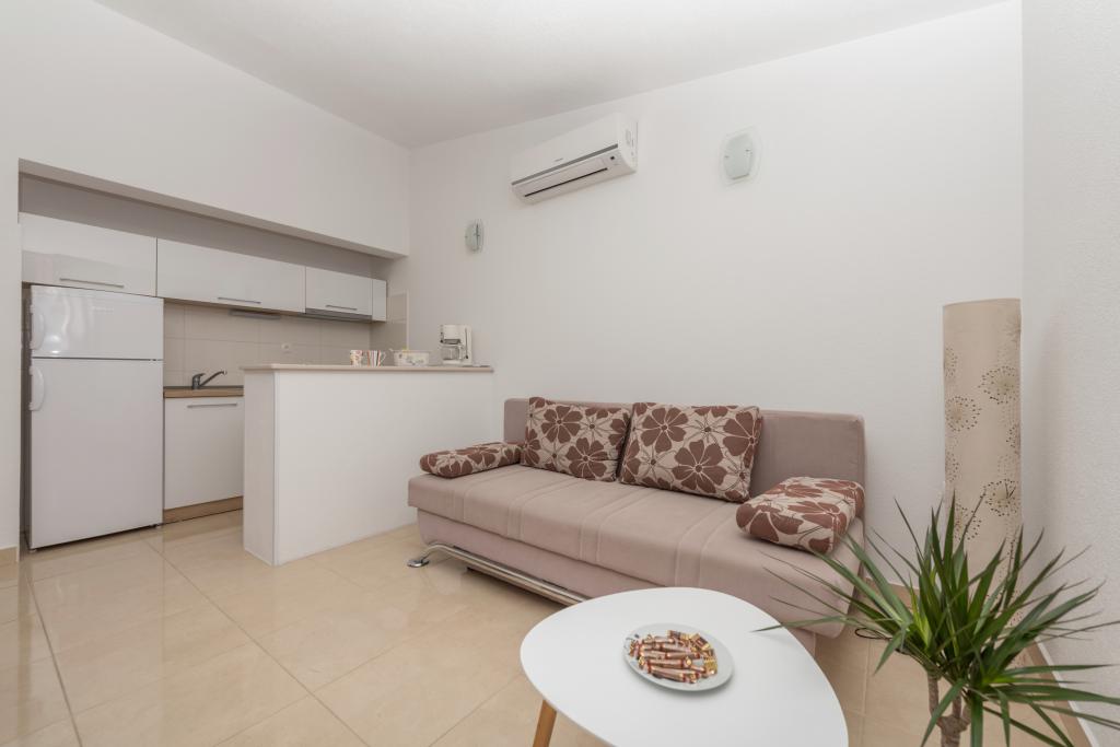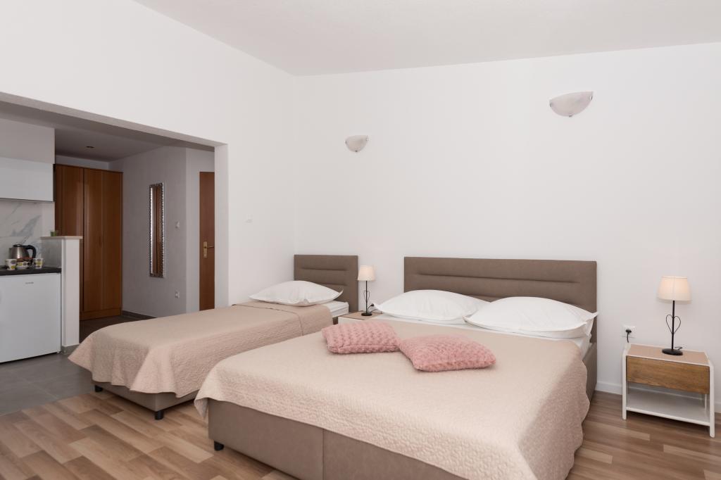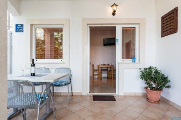 Klimatizirani apartmaji s pogledom na morje, le 200 m od plaže, 4 minute hoje APARTMENT2 2 (a) LUXURY-, udobno. moderno stanovanje, 50 m2, ločena spalnica z zakonsko-dvojno posteljo in raztegljiv kavč za 2 osebi v dnevni sobi. APARTMA 4 1 z 2 spalnici velika dnevna soba s kavčem za 1-2 oseb. Primerno za družine in pare. APARTMA 3 sobno stanovanje za 2-3 oseb z balkonom -spektakularni morje in otoke. APARTMA 2 2 (b), klimatizirano stanovanje, ločen vhod iz spalnice in ležiščem za 2 osebi v dnevni sobi. , Pridruženi sončna terasa in prostor za sedenje spredaj apartmanaPogodan za družine in pare. SOBA za 2-ločenim vhodom, hladilnik, parkirišče . V okolju razpoložljivosti restavracije, trgovine, lekarna, zdravnik, plaže. Naši gostje imajo brezplačno uporabo Wi-Fi, parkirišče ob hiši. . Posebnost namestitev-mediteranski vrt za hišo s solarno prho za osvežitev.