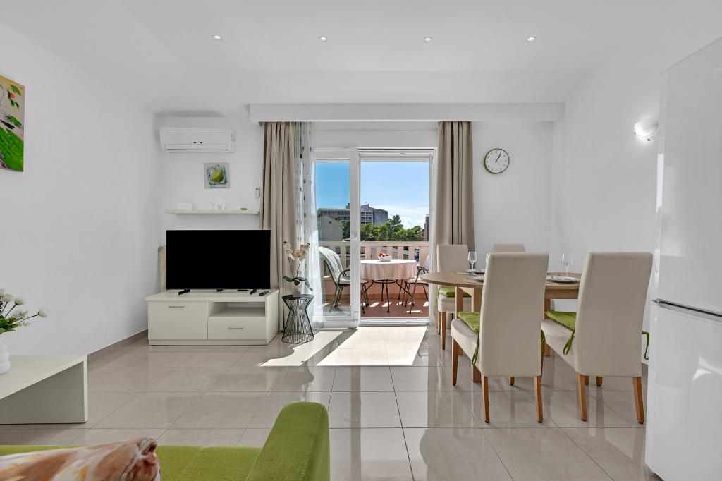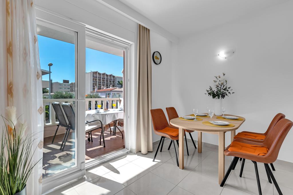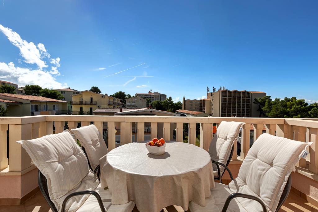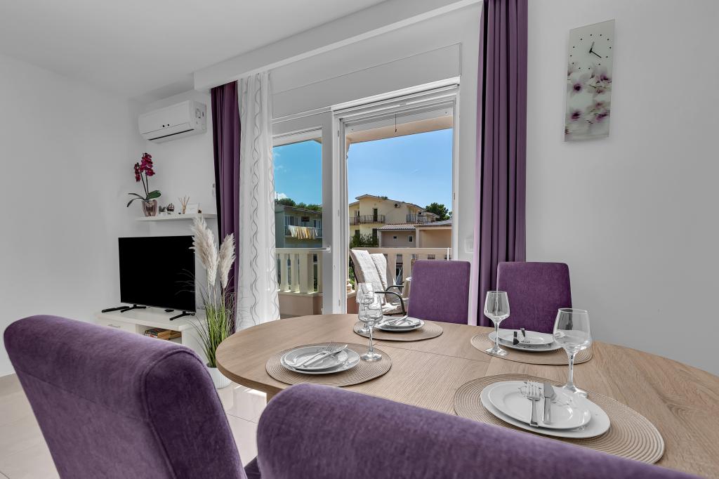 NOVA STANOVANJA! Vsi naši apartmaji so moderno opremljeni. Skupaj imamo v ponudbi šest (6) apartmajev, od katerih je pet (5) enosobnih in en dupleks - dvosoben. Na dvorišču je majhen bazen za goste, a) Enosobni apartmaji (2 odrasla in 2 otroka) imajo: sobo z zakonsko posteljo, veliko kopalnico z veliko tuš kabino, popolnoma opremljeno moderno kuhinjo z jedilnico in dnevno sobo s klimatsko napravo in udobnim raztegljivim kavčem za dva odrasla otroka ter brezžični internet. Vsako od teh stanovanj ima velik 9 m2 velik balkon iz dnevne sobe. b) Dvosobno, dvonadstropno stanovanje 4 (4 odrasli in 2 otroka) ima v prvem nadstropju moderno sobo z zakonsko posteljo in eno kopalnico s tušem in straniščem, popolnoma opremljeno kuhinjo z jedilnico in dnevno sobo z udobnim raztegljivim kavčem za dva odrasla otroka. V drugo nadstropje se pride po zavitem stopnišču, kjer se nahaja velika soba, kopalnica in ločen WC. . Obe nadstropji sta klimatizirani.
