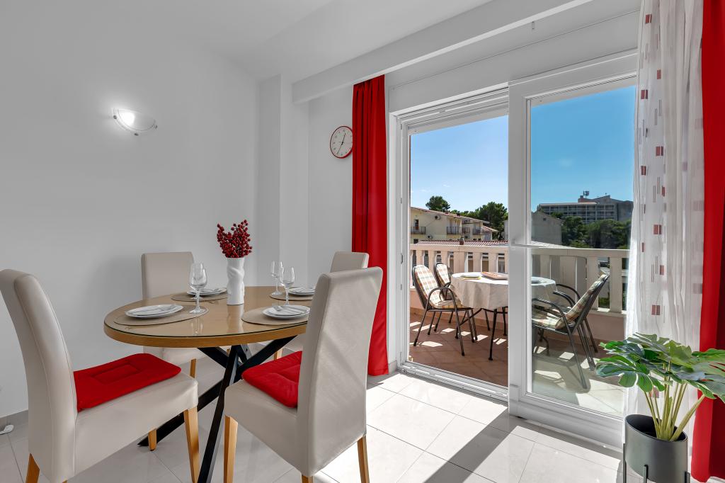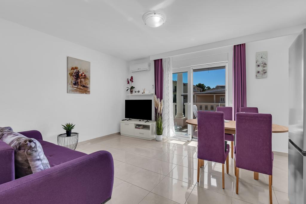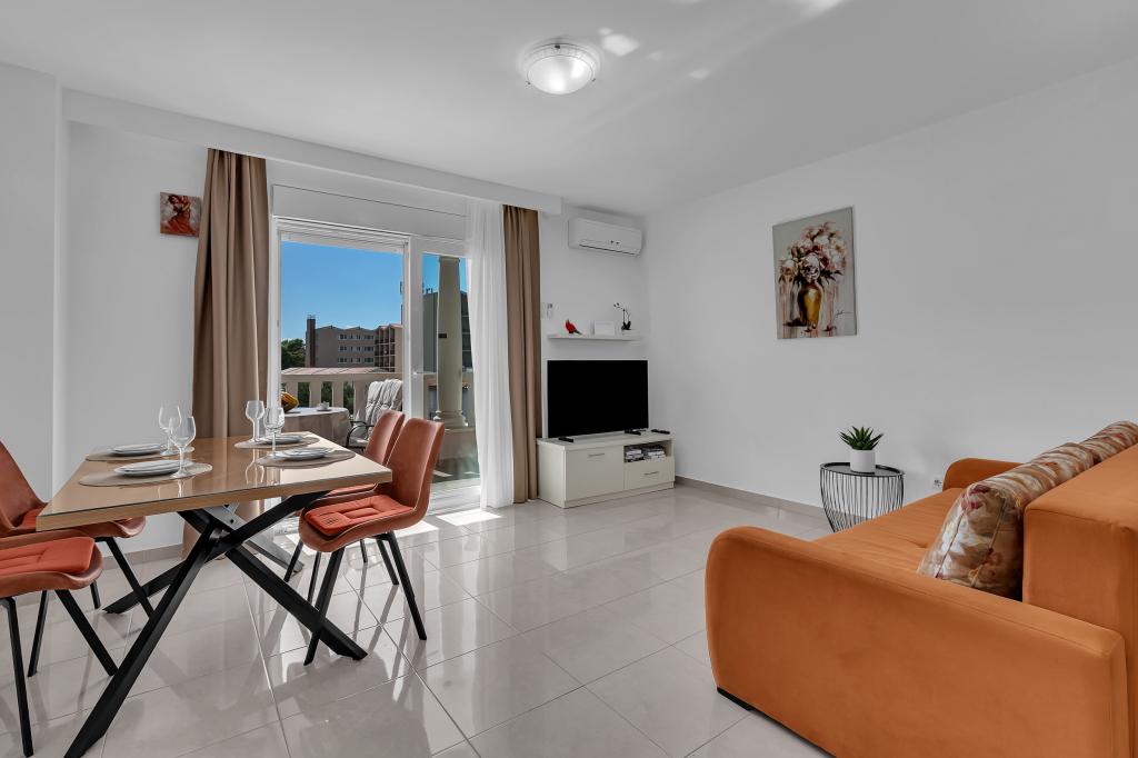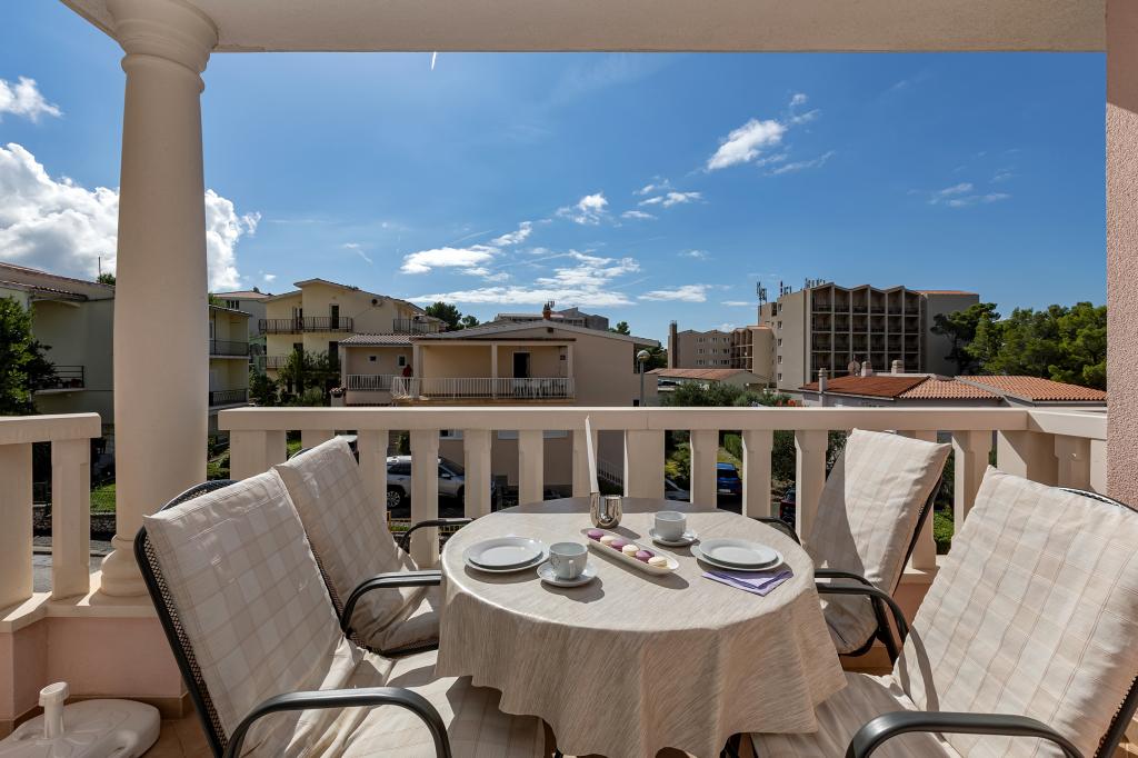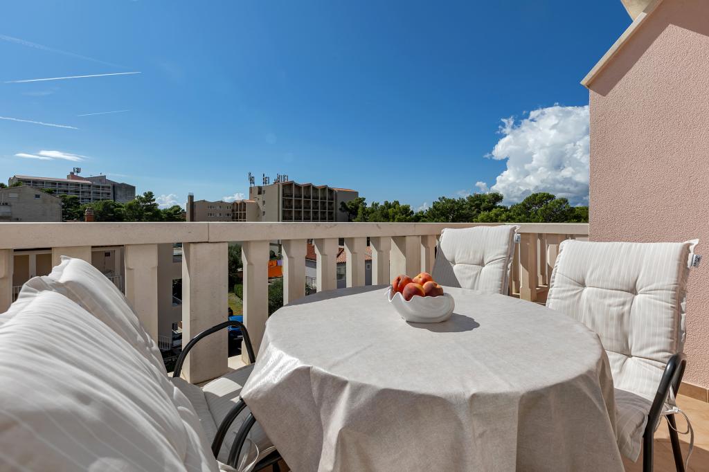 NOVA STANOVANJA! Vsi naši apartmaji so moderno opremljeni. Skupaj imamo v ponudbi šest (6) apartmajev, od katerih je pet (5) enosobnih in en dupleks - dvosoben. Na dvorišču je majhen bazen za goste, a) Enosobni apartmaji (2 odrasla in 2 otroka) imajo: sobo z zakonsko posteljo, veliko kopalnico z veliko tuš kabino, popolnoma opremljeno moderno kuhinjo z jedilnico in dnevno sobo s klimatsko napravo in udobnim raztegljivim kavčem za dva odrasla otroka ter brezžični internet. Vsako od teh stanovanj ima velik 9 m2 velik balkon iz dnevne sobe. b) Dvosobno, dvonadstropno stanovanje 4 (4 odrasli in 2 otroka) ima v prvem nadstropju moderno sobo z zakonsko posteljo in eno kopalnico s tušem in straniščem, popolnoma opremljeno kuhinjo z jedilnico in dnevno sobo z udobnim raztegljivim kavčem za dva odrasla otroka. V drugo nadstropje se pride po zavitem stopnišču, kjer se nahaja velika soba, kopalnica in ločen WC. . Obe nadstropji sta klimatizirani.