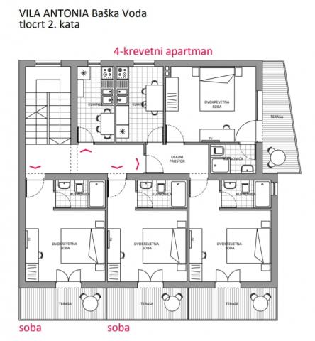 Preberite več Namestitvene enoteRezervacija apartmaja poteka po elektronski pošti in potrjuje plačilo akontacije v višini 20% celotne cene bivanja. Ponudbo pošljemo na pisno zahtevo gosta, v primeru sprejema ponudbe pa depozitni račun. Čas prihoda apartmaja na dan prihoda je 13:00 in čas odhoda iz apartmaja na dan odhoda je do 10:00 ure. Turistična taksa je vključena v ceno.