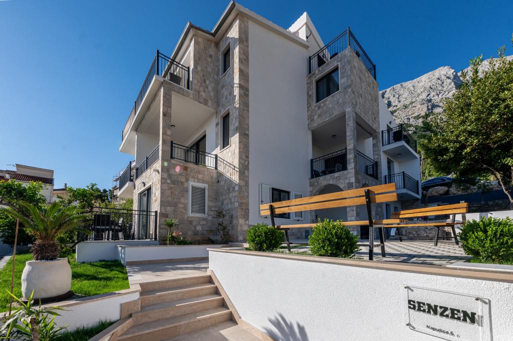 Villa Senzen se nahaja v mirnem osrednjem delu Baške Vode, le 150 metrov od centra in 200 metrov od čudovitih plaž. Gostom je na voljo vrt z zunanjim prostorom za sedenje in parkirišče v bližini. Vsaka enota ima pametno televizijo, klimatsko napravo, hladilnik, aparat za kavo, grelnik za vodo in lastno kopalnico s prho in sušilcem za lase, medtem ko so apartmaji opremljeni s satelitsko televizijo z ravnim zaslonom, klimatsko napravo in zasebnimi balkoni ali terasami ter popolnoma opremljeno kuhinjo. . V celotnem objektu je na voljo brezplačen internet. Nekatere enote imajo balkon ali teraso s pogledom na morje.