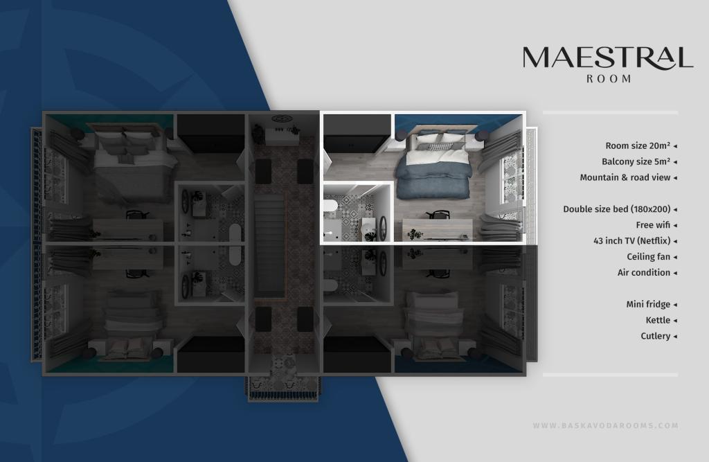 Namestitvene enoteZa rezervacijo akontacije 30% celotnega zneska na TRR, preostanek ob prihodu. Rezervacija velja le po vidnem plačilu akontacije. Povpraševanje po rezervaciji sprejemamo po elektronski pošti. Za vse ostale informacije me kontaktirajte. Idealen čas prihoda je od 13.00 do 22.00 ure, odhod pa od 6.00 do 10.00 ure, možen pa je tudi po dogovoru. Hišni ljubljenčki niso sprejeti. Zabave in praznovanja so prepovedani. Cena za manj kot 3 nočitve se poveča za 50%.