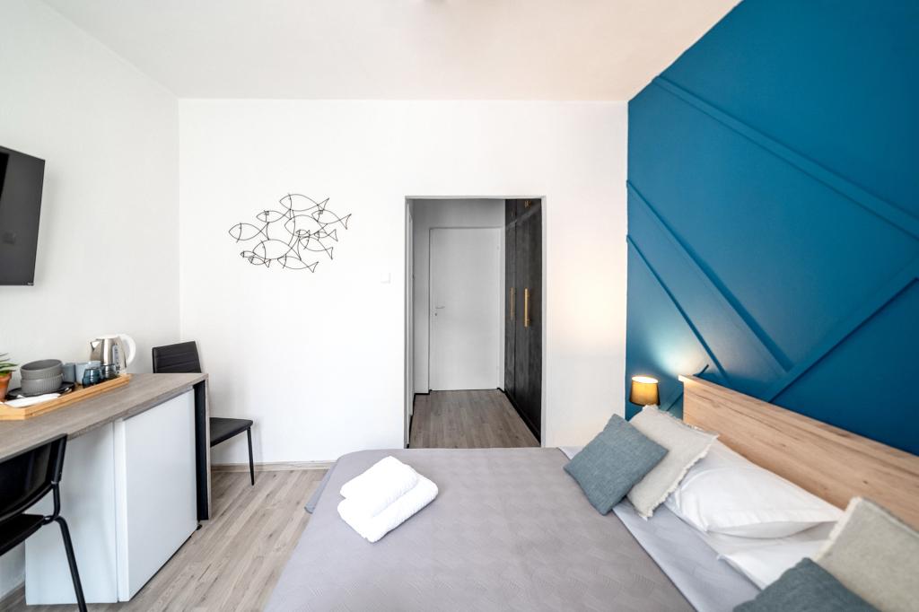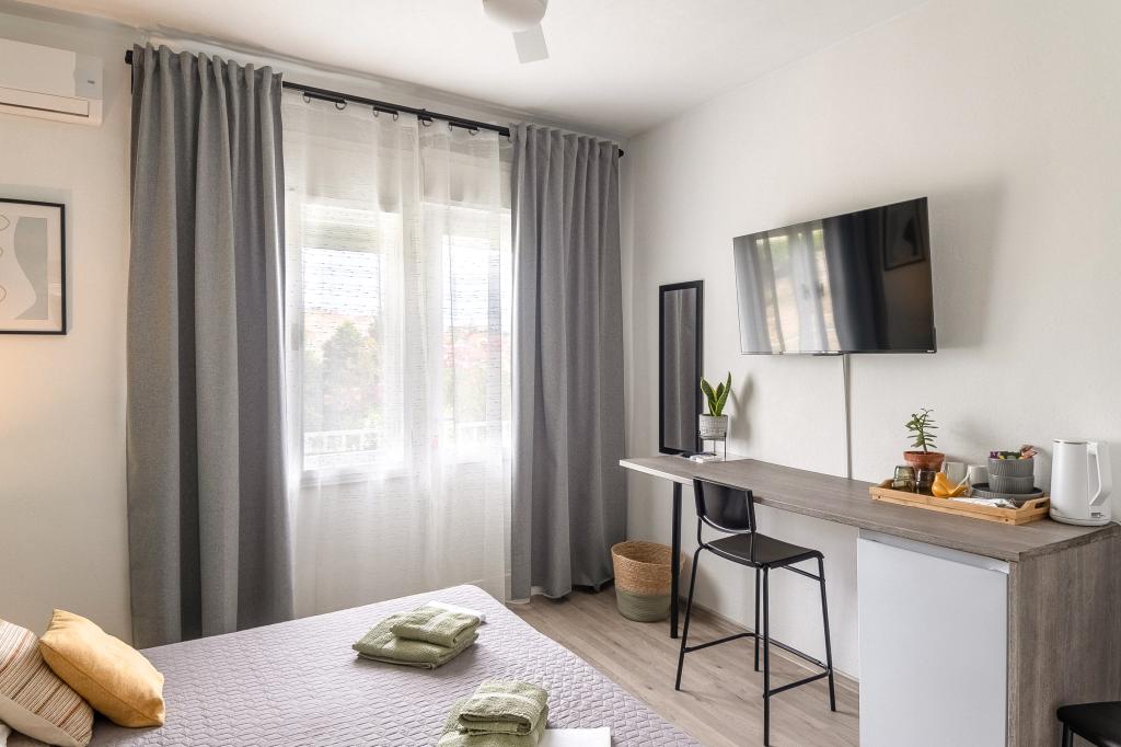Zasebna soba z lastno kopalnico in balkonom. Namestitev se nahaja v centru mesta in oddaljenost od najbližje glavne plaže je 200m - 3 minute hoje.