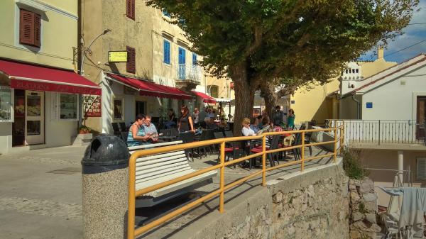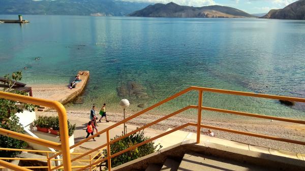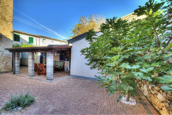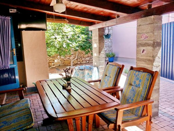 Apartman se nalazi u mirnom dijelu samog centra stare jezgre Baške u kući prizemnici sa prostorijama u nizu, rustikalnog izgleda i sastoji se od jedne sobe sa bračnim krevetom i kaučem na razvlačenje, kuhinje i kupatila. Renoviran je, te opremljen hladnjakom, mikrovalnom pećnicom, kuhalom i kuhinjskim posuđem. Ima ograđeno dvorište 70m2 sa nadstrešnicom koja štiti od sunca i velikim vrtnim stolom. U dvorištu su zasađene autohtone vrste biljaka kao što su maslina, ružmarin, palma i tekoma. Apartman osigurava privatnost, sa svih strana je zaklonjen od pogleda. Uz nadstrešnicu hlad daje i gusta zelena tekoma, koja se proteže uz kuću. Udaljen je samo 50 metara od prve plaže, 30 m od restorana i prvog kafića gdje se može popiti prva jutarnja kava. Poznata velika plaža je udaljena svega 200m. Gostima je na raspolaganju besplatan bežični pristup internetu. Parking je osiguran 300m od objekta.