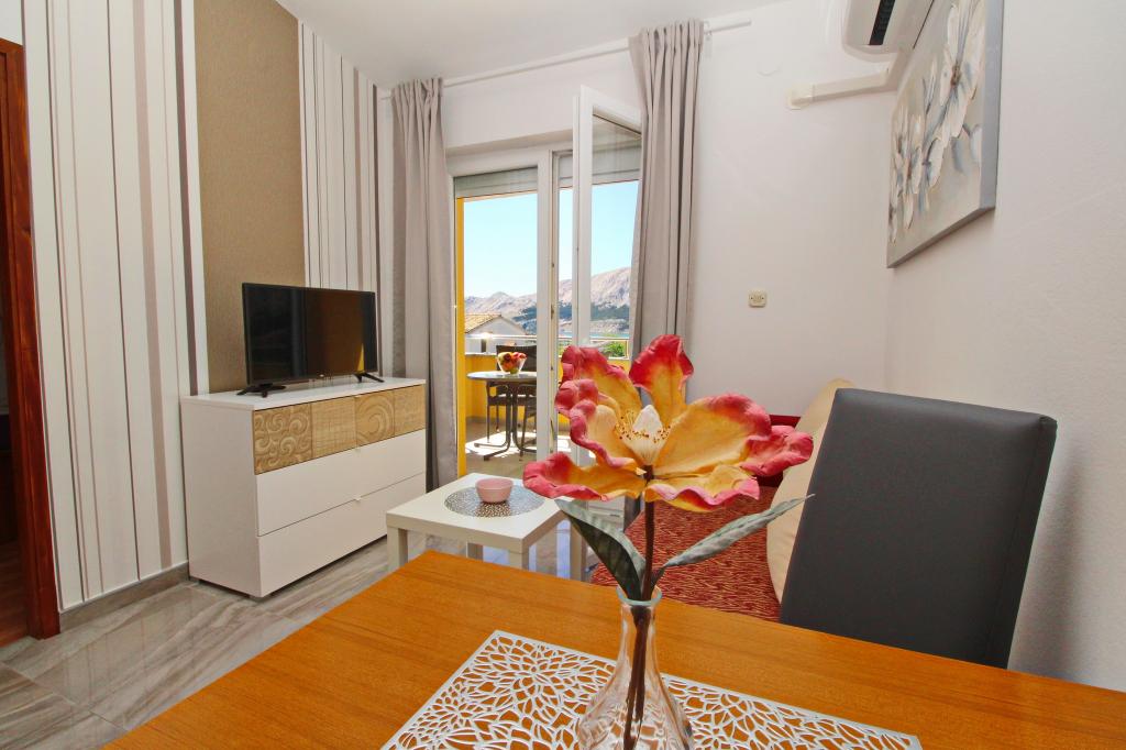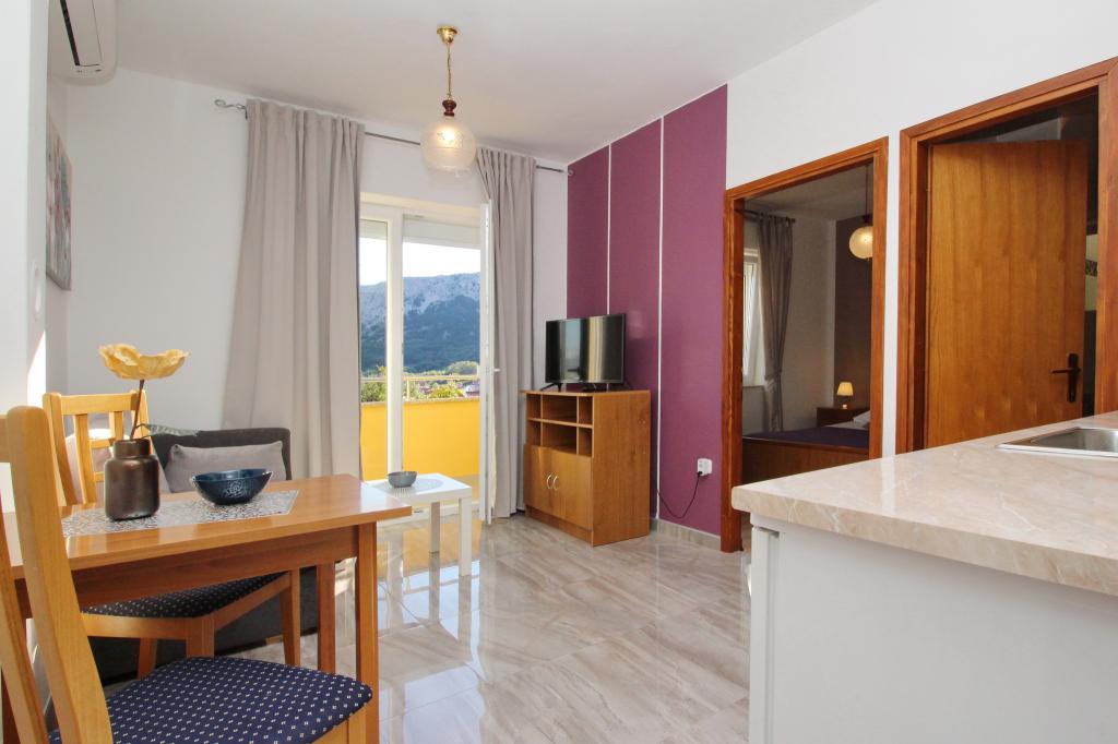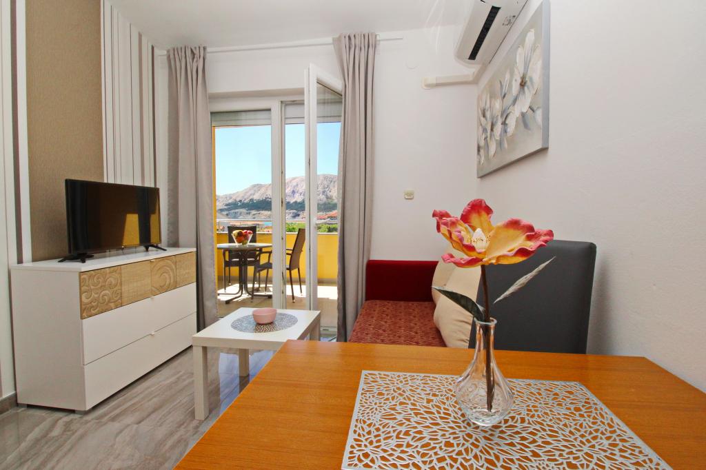 Apartmaji se nahajajo 7 minut hoje od centra Baške in 9 minut hoje od čudovite prodnate plaže Vela. Hiša ima 7 prenovljenih in lepo urejenih apartmajev, ki so opremljeni s klimatsko napravo, internetom in SAT-TV. Vsakemu apartmaju pripada eno parkirno mesto.