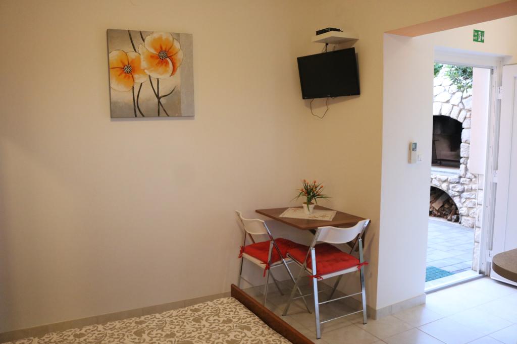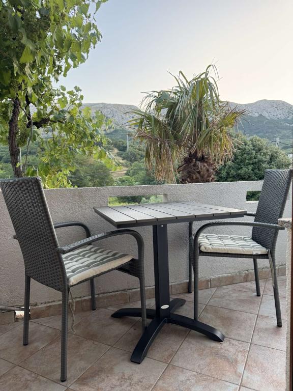 Apartmaji Gina se nahajajo v Dragi Bašćanski, obdani z zelenjem, nekaj minut vožnje z avtomobilom od Vele plaže, ki je oddaljena le 3 km. Apartmaji imajo svojo ločeno teraso/balkon, soba pa gleda na goro in vinograd, kjer je posajena vrbnička žlahtina. Na dvorišču je tudi prostor za žar, zunanja miza za goste in parkirišče za avtomobile.