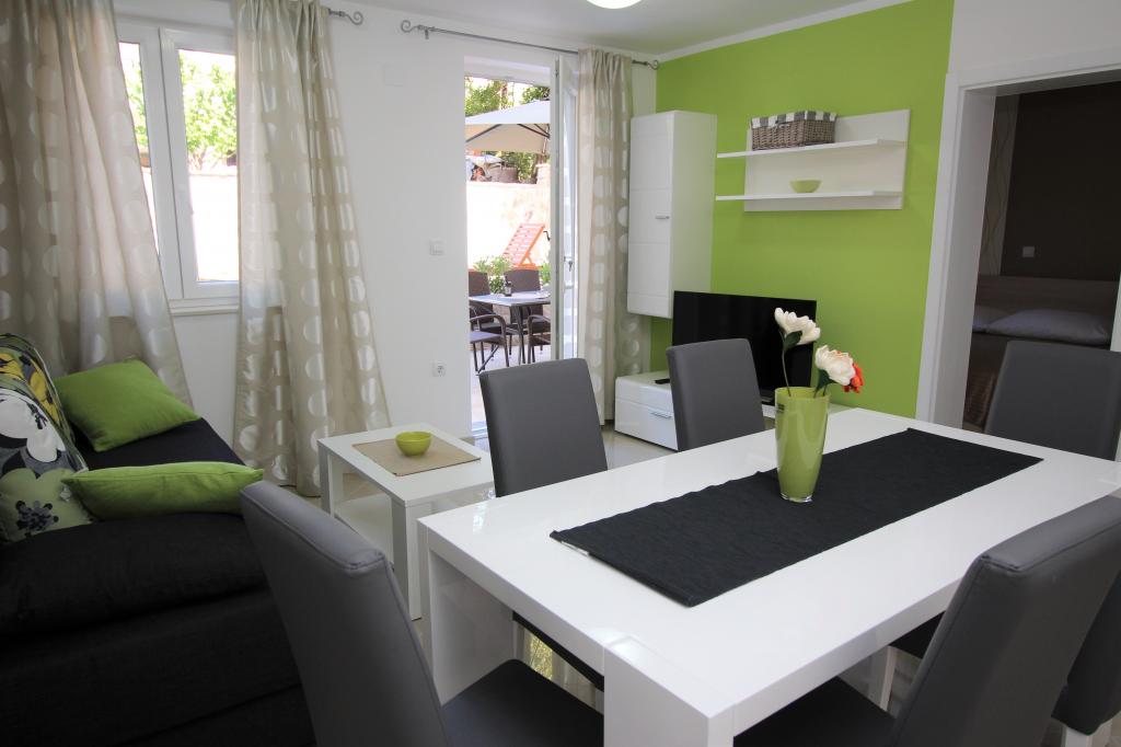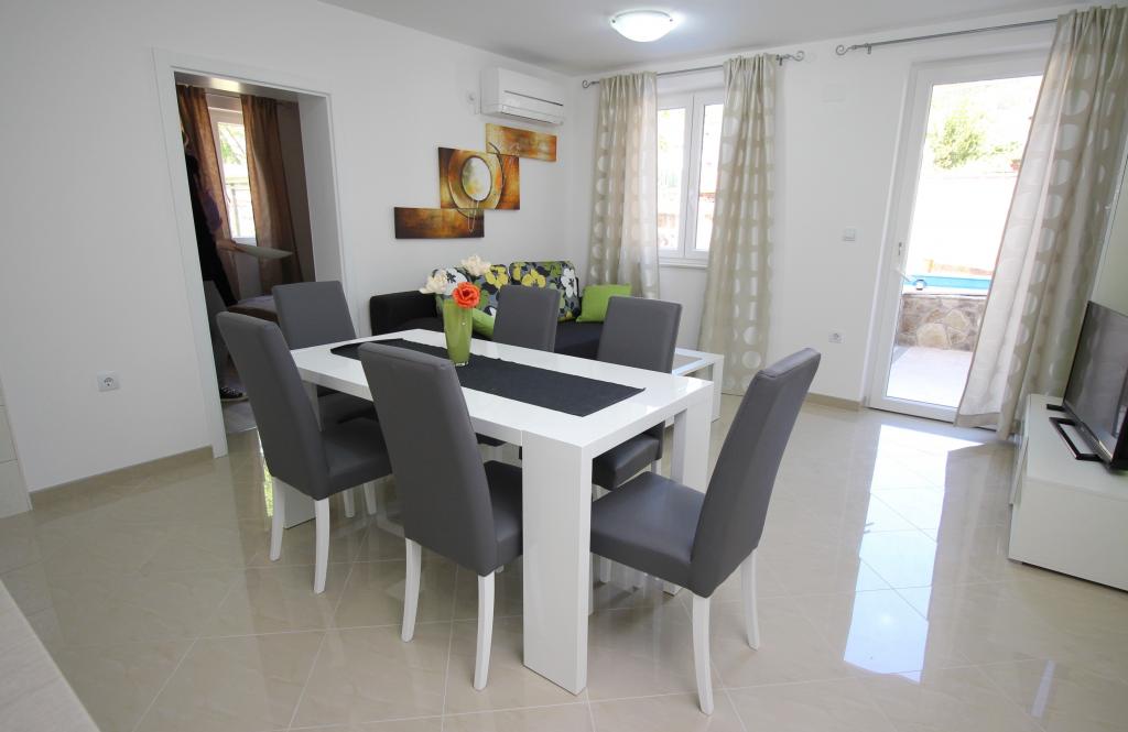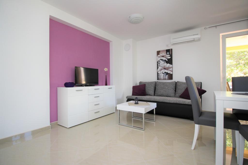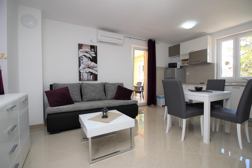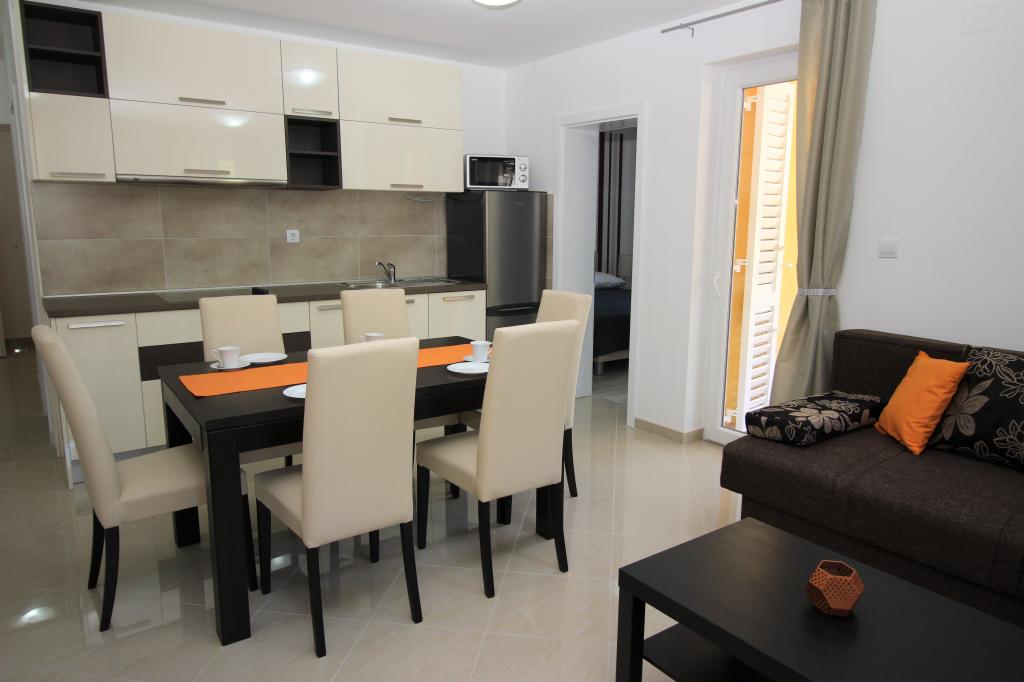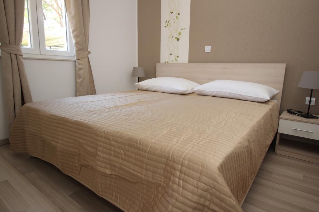 Moderno opremljeni apartmaji, le 5 minut hoje od čudovite plaže Vela, s skupnim zunanjim bazenom in žarom. Hiša ima 9 apartmajev, opremljenih s pomivalnim strojem, pralnim strojem, sefom, klimatsko napravo, internetom in SAT-TV. Vsak apartma ima eno parkirno mesto. Hišni ljubljenčki niso dobrodošli.