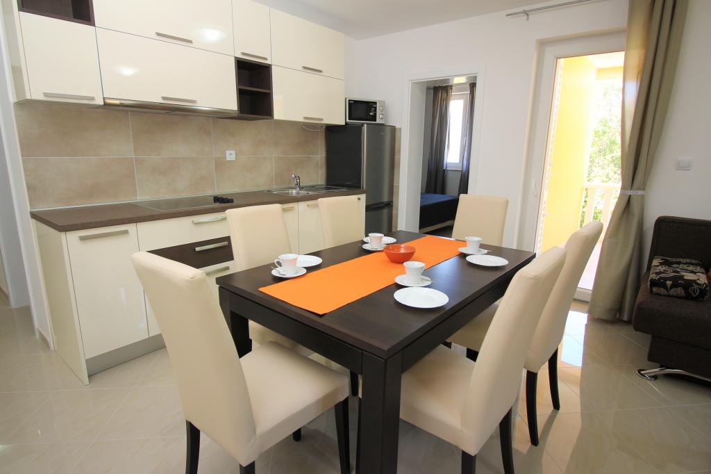 Preberite več Namestitvene enoteProsimo, upoštevajte, da je rezervacija možna za minimalno 4 nočitve od 01.04.-20.06., za minimalno 7 nočitev od 21.06.-05.09. in za minimalno 4 nočitve od 06.09.-06.10. Cene se bodo prikazale, ko vnesete želeno obdobje bivanja in število oseb. Cene po sezonah si lahko ogledate pod cenikom v € (na desni, pod slikami želene namestitvene enote). Dodatni stroški: turistična taksa (odrasli 2,20 EUR/oseba/noč; otroci 12-18 let 1,10 EUR/oseba/noč) in prijavnina (5 EUR/oseba/enkratno). Za fiksno rezervacijo je treba plačati akontacijo v višini 30 % celotne cene apartmaja (prek bančnega nakazila). Preostali znesek namestitve, davka in prijavnine se plača ob prihodu. Prijava v apartma je možna po 14. uri, odhod je do 10. ure.