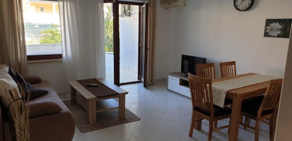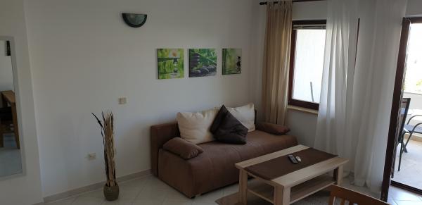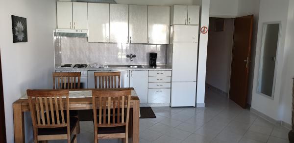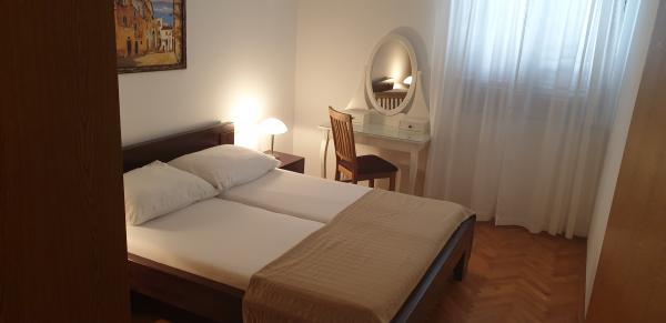 Naši apartmaji s 4 zvezdicami se nahajajo v 2. vrsti na območju Zarok, na mirni lokaciji in s pogledom na morje. Plaža Vela je le nekaj korakov stran (50m); Trgovina in pekarna sta za vogalom; Do promenade / centra mesta z restavracijami, bari, kavarnami, lekarno, supermarketi itd. Vsak od naših 3 apartmajev A2 2 (51 ali 60 m2) je sestavljen iz spalnice z zakonsko posteljo, hodnika, kopalnice z WC-jem in prho, dnevne sobe s kuhinjo, jedilnico in velikim raztegljivim kavčem (za 2 osebi) in velike terasa s sedežno garnituro. Vsa dodatna oprema je brezplačna za vas: brezžični internet, parkirišče, sef, sušilec za lase, aparat za kavo, satelitsko televizijo, klimatsko napravo / ogrevanje in drugo. Apartmaji 2 in 3 imajo vsak zasebni vrt s figovimi drevesi. Apartma 3 deluxe se je razširil tudi na zimski vrt z jedilnico, poleg tega pa nudi ogrevanje na marmorni plošči, pralni stroj in zasebno žar.