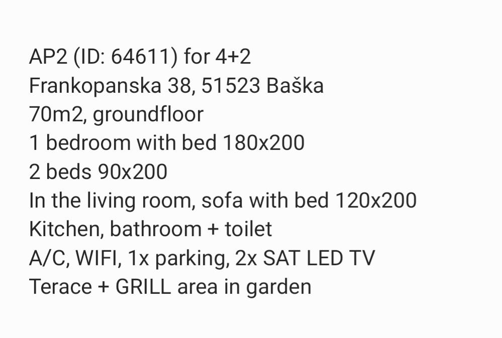 Apartmaji Tea so družinski apartmaji v Baški na otoku Krku. Nahajajo se na več lokacijah v Baški, v bližini hotela Sunny Corinthia in v Dragi Baška. Apartmaji so popolnoma opremljeni in se nahajajo v mirni ulici v bližini osrednje plaže Vela Plaža.