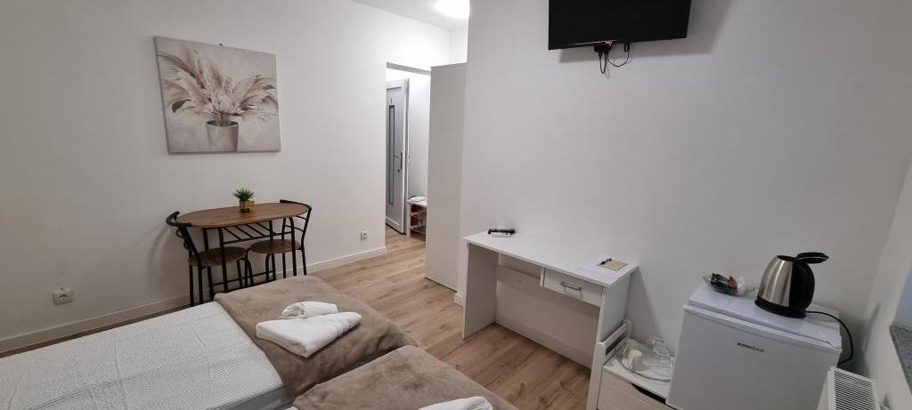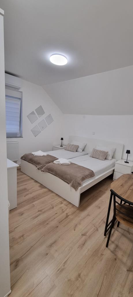 Kaj ponujamo? Udobna dvoposteljna soba za najem v Belem Manastiru: Opremljena z dvema udobnima posteljama, idealna za počitek in sprostitev po raziskovanju Baranje. Zasebna kopalnica: Sodobna oprema, vroča prha in vsi potrebni higienski pripomočki za vaše udobje. Hladilnik: shranite hrano in pijačo za dodatno udobje. Brezplačen Wi-Fi: Ostanite povezani in brskajte po internetu brez motenj. Klimatska naprava: ohranja popolno temperaturo ves čas vašega bivanja. Pisalna miza: idealna za poslovne potnike, ki potrebujejo miren prostor za delo. IPTV: uživajte v različnih kanalih z vsega sveta in spremljajte svoje najljubše programe in vsebine. V hladilniku vas bo čakala pijača dobrodošlice. V sklopu nastanitve je kozmetični salon, zraven nastanitve pa je možno urediti ličenje ali druge kozmetične storitve.