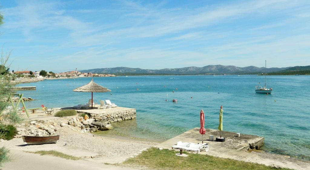 Apartma je primeren za bivanje dveh parov ali štiričlanske družine. Apartma se nahaja v prvem nadstropju družinske hiše, prva vrsta do morja v Betini. Stanovanje je udobno in prostorno. Sestavljen je iz dveh spalnic, dnevne sobe, kuhinje in kopalnice. Vsaka soba ima dve postelji (zakonska postelja). V dnevni sobi je kavč, TV in brezžični dostop do interneta. Kuhinja je opremljena za pripravo obrokov (štedilnik, pečica, hladilnik, aparat za espresso kavo, grelnik vode, toaster, mešalnik, mikrovalovna pečica, jedilni pribor in posoda). Vsaka soba ima svojo klimatsko napravo. Dnevna soba ima izhod na veliko teraso s pogledom na morje. Na dvorišču za hišo je parkirišče za avto, zunanji tuš in zunanji žar. Pred hišo je plaža za kopanje in sončenje, senčniki in ležalniki. Mesto Betina je od apartmaja oddaljeno približno 800 metrov, 10 minut lahke hoje ob morju.