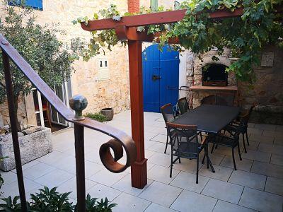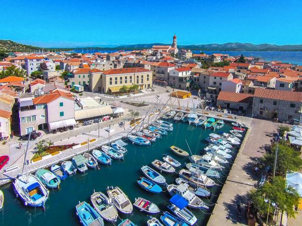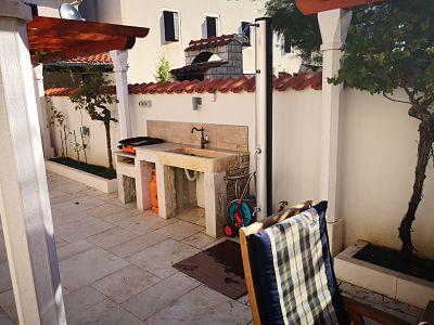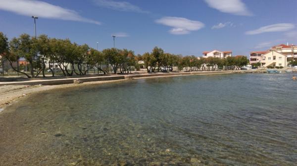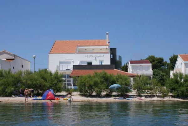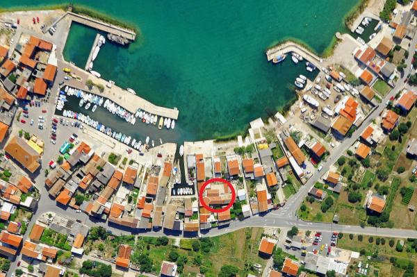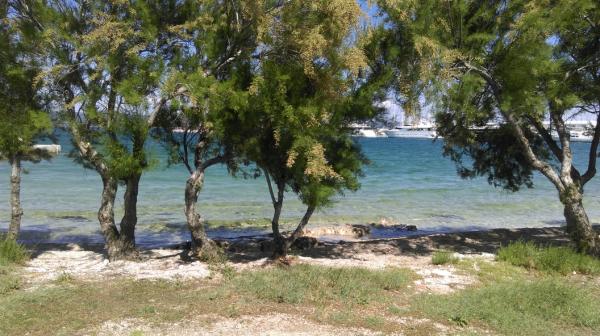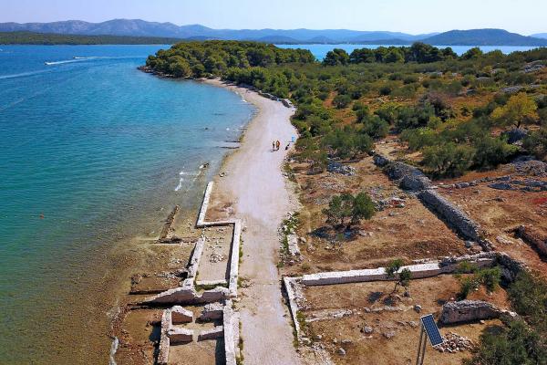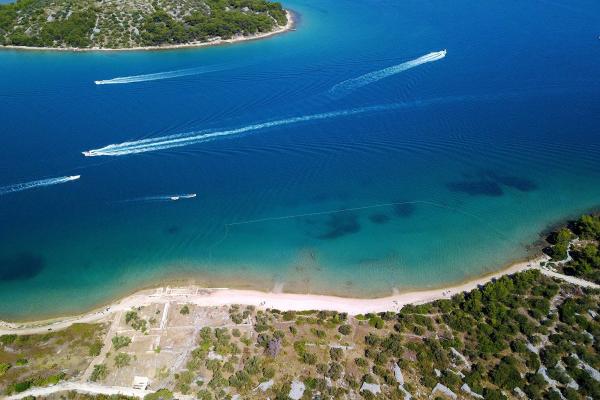 Pred objektom je plaža z naravno senco. Objekt se nahaja na arheološkem zavarovanem območju polotoka Gradina med naselji Betina in Murter.