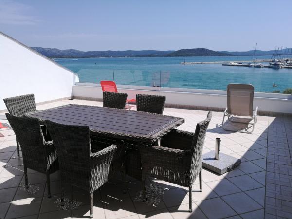 Apartmaji Lantina se nahajajo na obali v Betini na otoku Murterju. Otok je povezan s kopnim z mostom, tako da ga lahko vzamete neposredno v avto. Zaradi bližine Narodnega parka Kornati je Murter idealno izhodišče za izlete z ladjo. Nudimo apartmaje za 2, 4 (4 1) ali 6 (6 2) oseb. Na voljo je 34 ležišč. Vsi apartmaji imajo kuhinjo, jedilnico, kopalnico / WC, bar eno spalnico z zakonsko posteljo ter balkon ali teraso. Vsi so klimatizirani. Nudimo brezplačno parkiranje, WiFi internet, satelitsko televizijo.