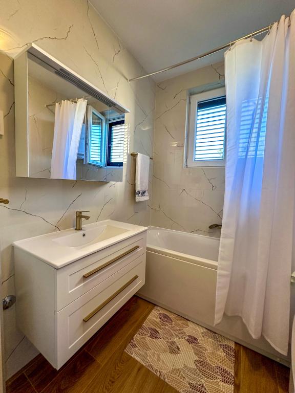 Apartmajska hiša se nahaja v mirnem delu Betine, obdana z zelenjem. Hiša ima 4 apartmaje in je le 5 minut hoje do centra in 10 minut hoje do plaže. Gostom je na voljo brezplačno parkiranje in uporaba žara na dvorišču.