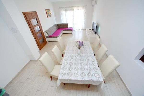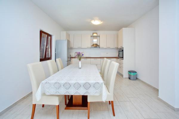 V lepem in mirnem kraju Bibinje, v nadstropju hiše, je moderno stanovanje \ Maria \. Sodobna tri spalnice, kopalnica, kuhinja in velika dnevna soba s teraso in pogledom na morje so idealni za vaše počitnice.