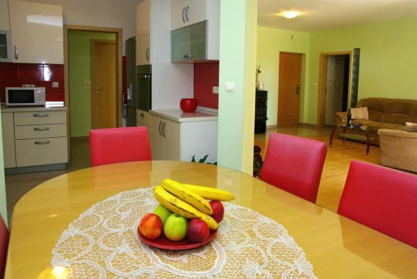 Stanovanje Paula se nahajajo v Bibinje v majhnem borovem gozdu, ki je obkrožen z tišino in žvrgolenju ptic. Le 5 minut hoje od apartmaja je plaža, ki je zelo primerna za otroke. V neposredni bližini letališča Zadar (10 minut vožnje z avtom) in mesto Zadar 7 km. Stanovanje ima tri spalnice z zakonsko posteljo, kopalnico s kadjo, popolnoma opremljeno kuhinjo (štedilnik, hladilnik z zamrzovalnikom, pomivalni stroj, mikrovalovna pečica). Na voljo je dnevna soba s kavčem, ki pretvarja v posteljo za dve osebi. Tudi apartma ima teraso, žar prostor in parkirišče zraven stavbe.