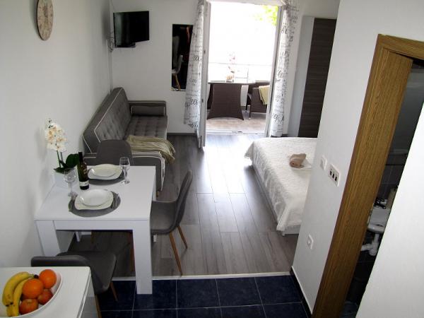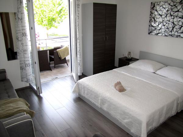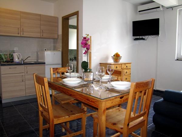 Apartmaji so dobro opremljeni, urejeni in dišeči, pogled na morje z balkona pa je čudovit. Hiša se nahaja na mirni lokaciji, idealni za dopust. Gostitelji so prijazni in na voljo. Plaža je tik pod hišo in nudi vse možnosti za celodnevno uživanje ob morju.