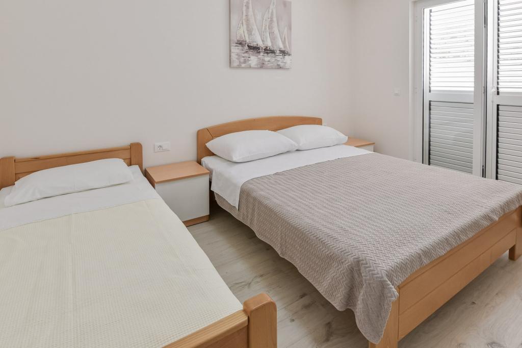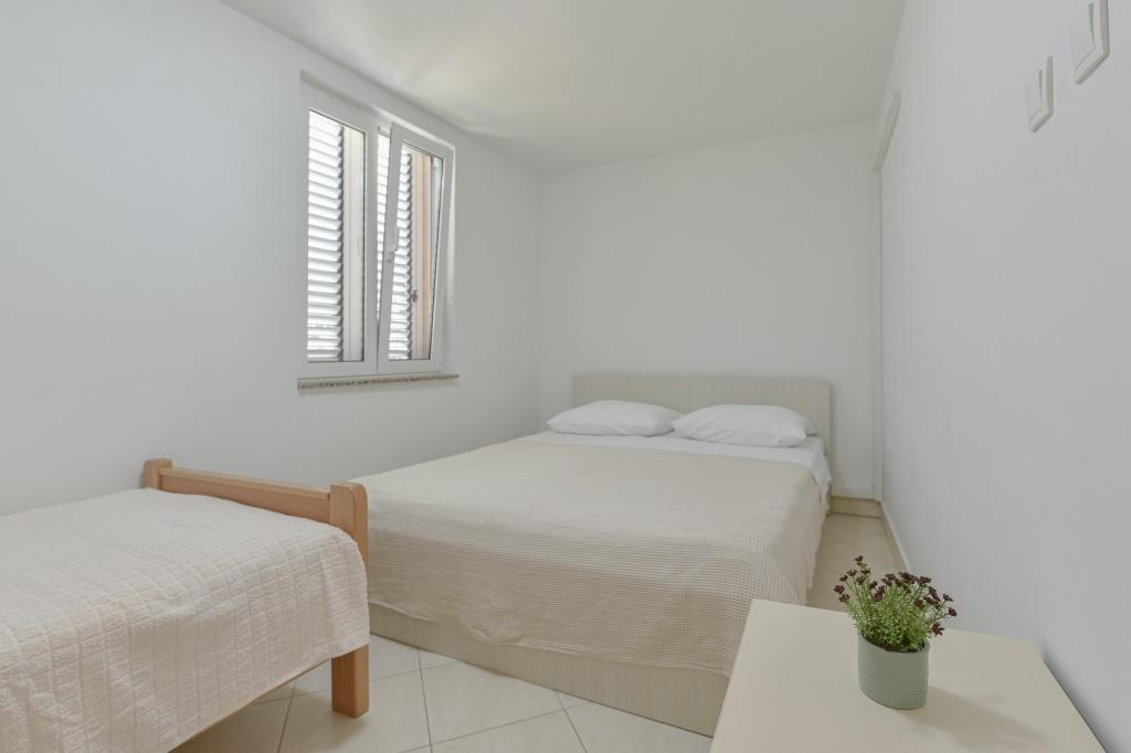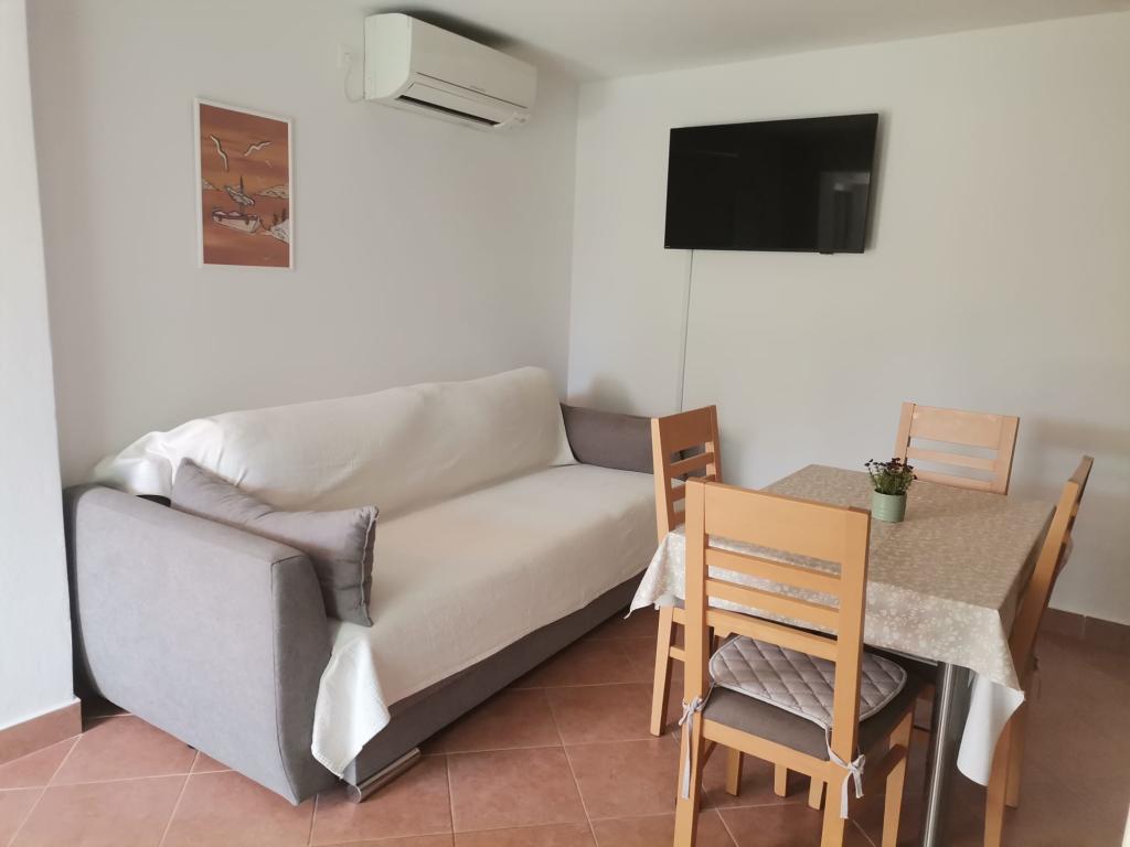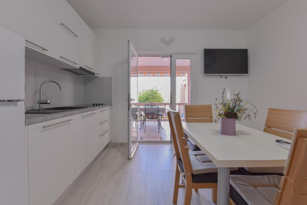 Čestitke družini Frleti! Sprejeli so nas toplo in prijazno. Apartma je bil urejen, čist, opremljen s posodo, posteljnino, TV, klimo in WiFi. Tako kot je na slikah, tako je tudi v resnici. Apartma je prostoren, lepo opremljen, postelje udobne za spanje. Ima veliko teraso s tendo, s katere lahko uživate v pogledu na mediteranski vrt družine Frlete. Veliko število urejenih plaž s čistim modrim morjem in lepo urejenimi promenadami ob morju z velikim številom restavracij in barov. Idealen za pobeg od hrupa in vsakdana. Mir, tišina ob zvoku čričkov, kriku galebov in šumu morja. Čisti hedonizem!