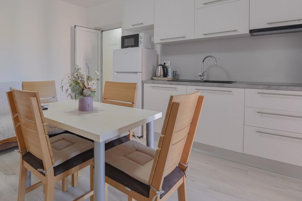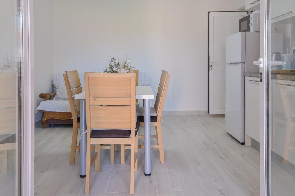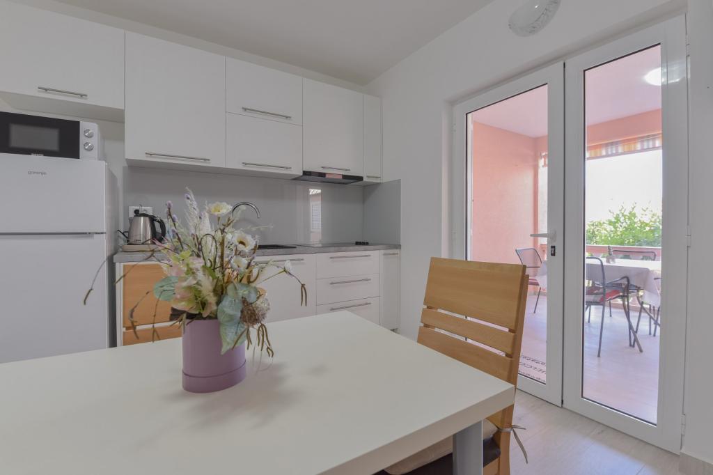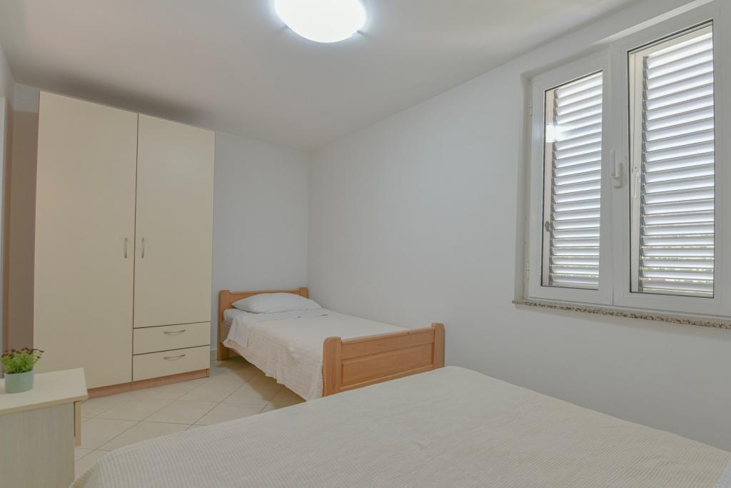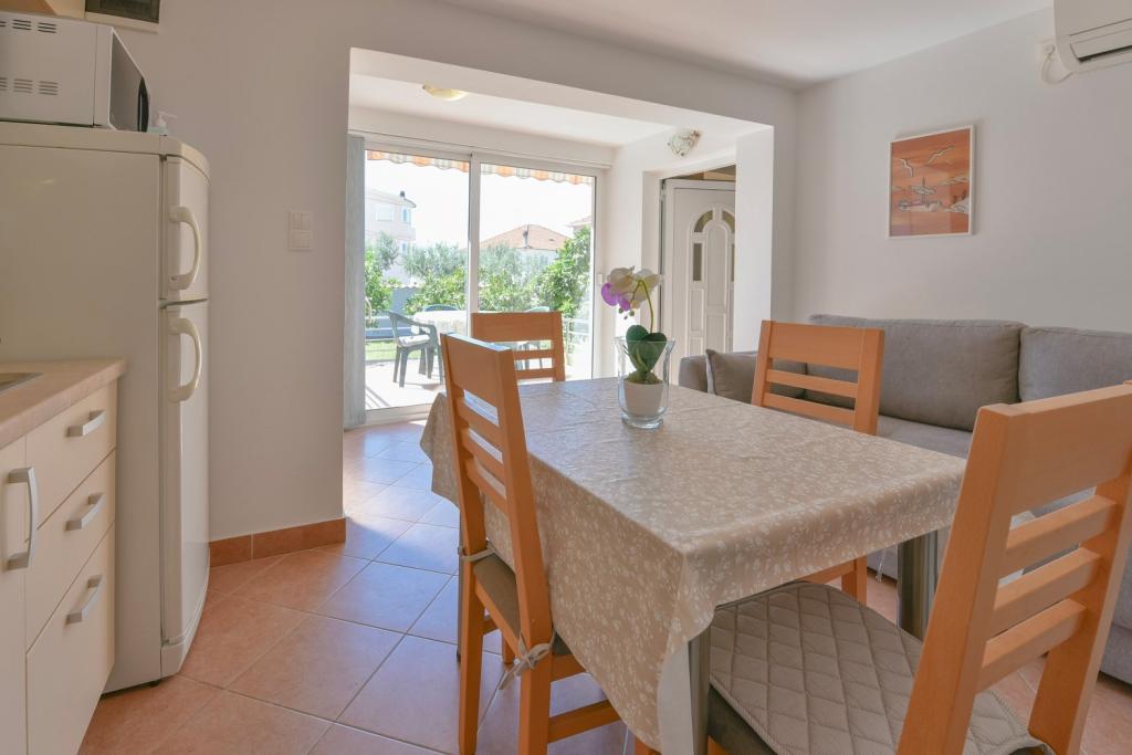 Čestitke družini Frleti! Sprejeli so nas toplo in prijazno. Apartma je bil urejen, čist, opremljen s posodo, posteljnino, TV, klimo in WiFi. Tako kot je na slikah, tako je tudi v resnici. Apartma je prostoren, lepo opremljen, postelje udobne za spanje. Ima veliko teraso s tendo, s katere lahko uživate v pogledu na mediteranski vrt družine Frlete. Veliko število urejenih plaž s čistim modrim morjem in lepo urejenimi promenadami ob morju z velikim številom restavracij in barov. Idealen za pobeg od hrupa in vsakdana. Mir, tišina ob zvoku čričkov, kriku galebov in šumu morja. Čisti hedonizem!
