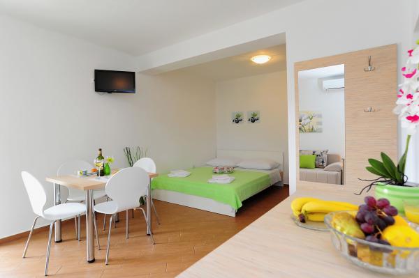 Popolnoma opremljeni in moderni apartmaji v mirnem predelu datumov, 2 minut hoje do centra mesta in 5 minut hoje do plaže. Premoženja je novozgrajeni bazen in zasebno parkiranje je brezplačno.