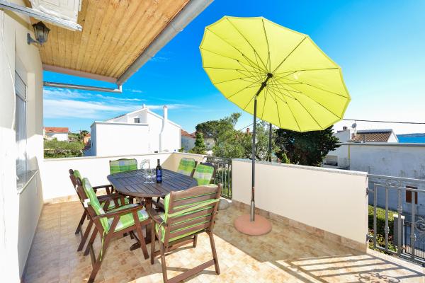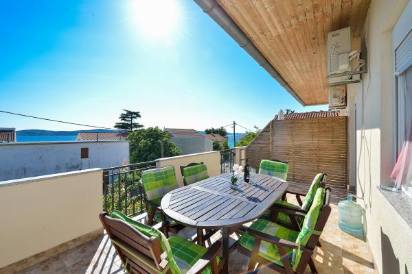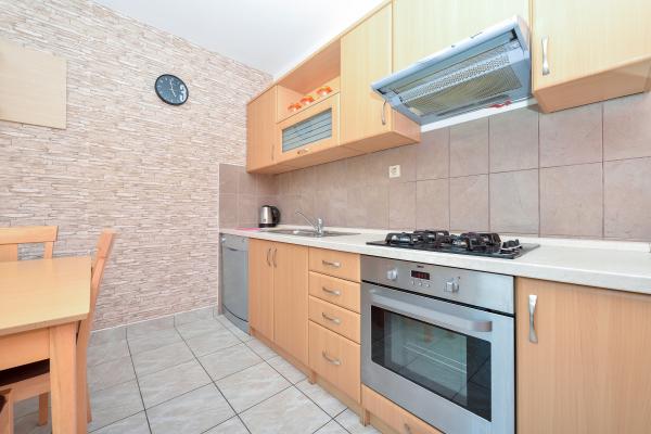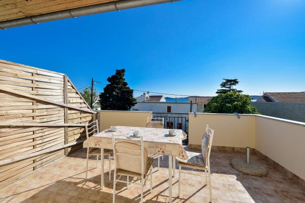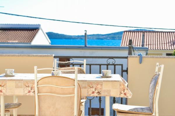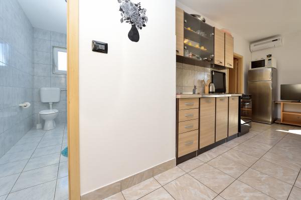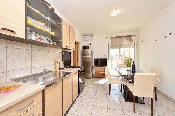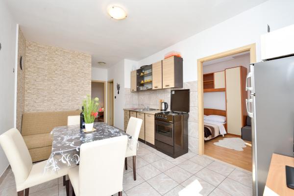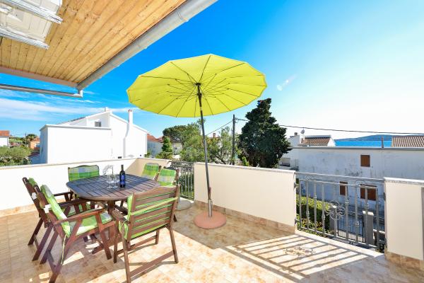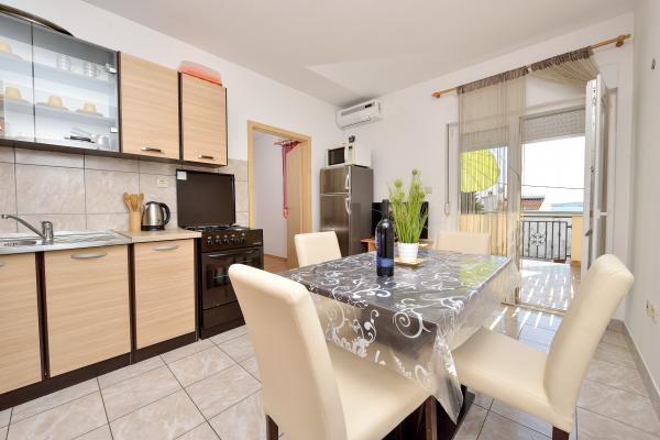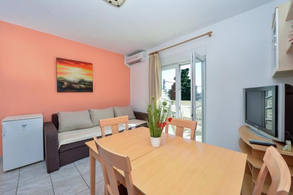 Popolnoma opremljeni in moderni apartmaji v mirnem predelu datumov, ki se nahaja v drugi vrsti do mora.Apartman se nahaja 30 metrov od morja in 80 m od prodnate plaže brezplačen internet, SAT TV, klima, TV, terasa s pogledom na morje, žar , parking, apartma 2 +2 4 in 6 imajo pomivalni in pralni stroj