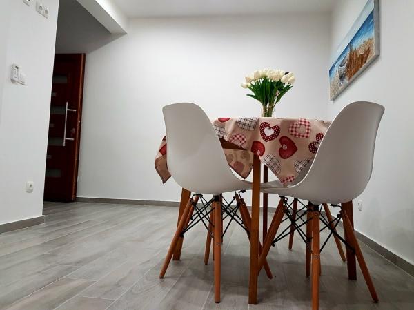 Novo zasnovani in opremljeni apartmaji v mirnem delu datumov, ki se nahaja na morju drugo. Blizu plaže (10m), restavracije, kavarne in 10 minut vožnje do Zadra. V bližini Narodnega parka Paklenica (Grad), Narodni park Krka, in na novo odprt zabaviščni park v pristanišču Red.