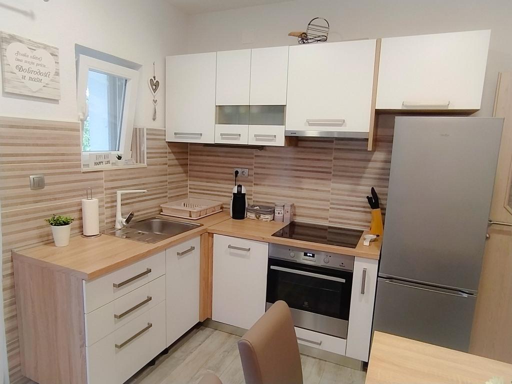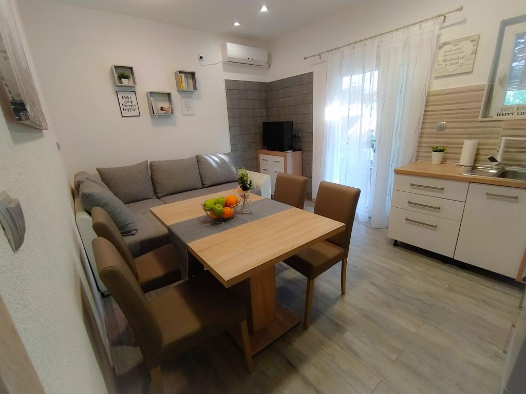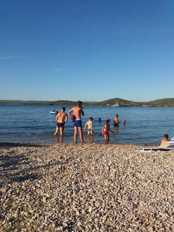 Apartma Baza se nahaja v mirnem naselju Bilice, med Šibenikom in narodnim parkom Krka. Velikost apartmaja je 35 m2 in terasa 18 m2. Sestavljen je iz spalnic z dvema ležiščema, ki ju je mogoče združiti in ločiti, popolnoma opremljena kuhinja (pečica, zamrzovalnik, pralni stroj) in dnevna soba z dvema ležiščema. Kopalnica je prostorna in na voljo je brezplačna uporaba pralnega stroja. Apartma ima klimatsko napravo, Wi-Fi, TV (satelit, Smart TV). Če pridete z otroki, vam lahko ponudimo potovalno posteljico in hranilnik. Na voljo je zasebno parkirišče, veliko dvorišče in žar. Dvorišče je ograjeno in dovolj veliko za igranje, če pridete z manjšimi otroki. Oddaljenost do plaže in kavarne z otroškim igriščem je 250 m, 5 minut peš. Blizu avtoceste.