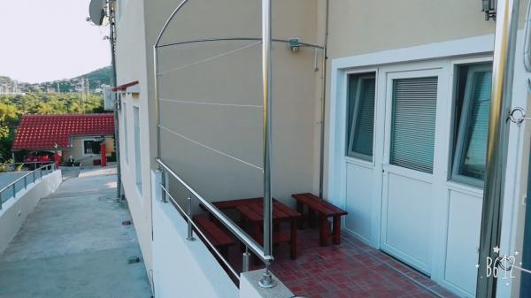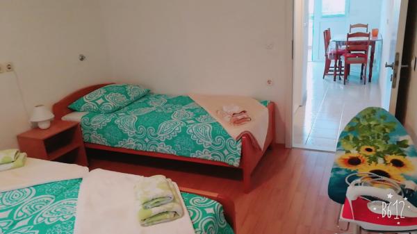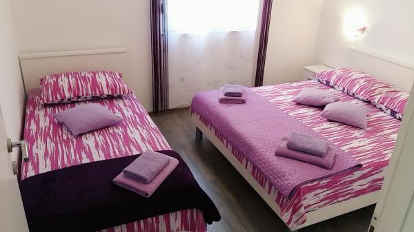 Stanovanjske enote brez. 1 BLUE 3 2 osebe se nahaja v pritličju hiše. Popolnoma opremljeni in moderno sestavljen iz ene spalnice s tremi ležišči in prostorno dnevno sobo z raztegljivim ležiščem za dve osebi, kuhinjo, kopalnico in teraso. Stanovanjske enote brez. Vijolična 2 5 2 osebi se nahaja v pritličju hiše. Popolnoma opremljeni in moderno, sestavljen iz dveh sob. V eni sobi je zakonska postelja in ljudje, in drugi dve postelji za osebe. Na voljo je tudi dnevna soba s kavčem za dve osebi, kuhinjo, kopalnico in prostorno teraso. Apartmaji imajo možnost pridružitve \\\\ \\\\ dveh stanovanj tako, da je med njimi tam \\\\ \\\\ dvojna vrata Stanovanjske enote brez. 3 ZELENA ORANŽNA 3 1 oseba v pritličju hiše. Popolnoma opremljen apartma je sestavljen iz spalnice s tremi ležišči in dodatnim ležiščem, kuhinjo, kopalnico in teraso. Parkirišče za avtomobile na dvorišču.